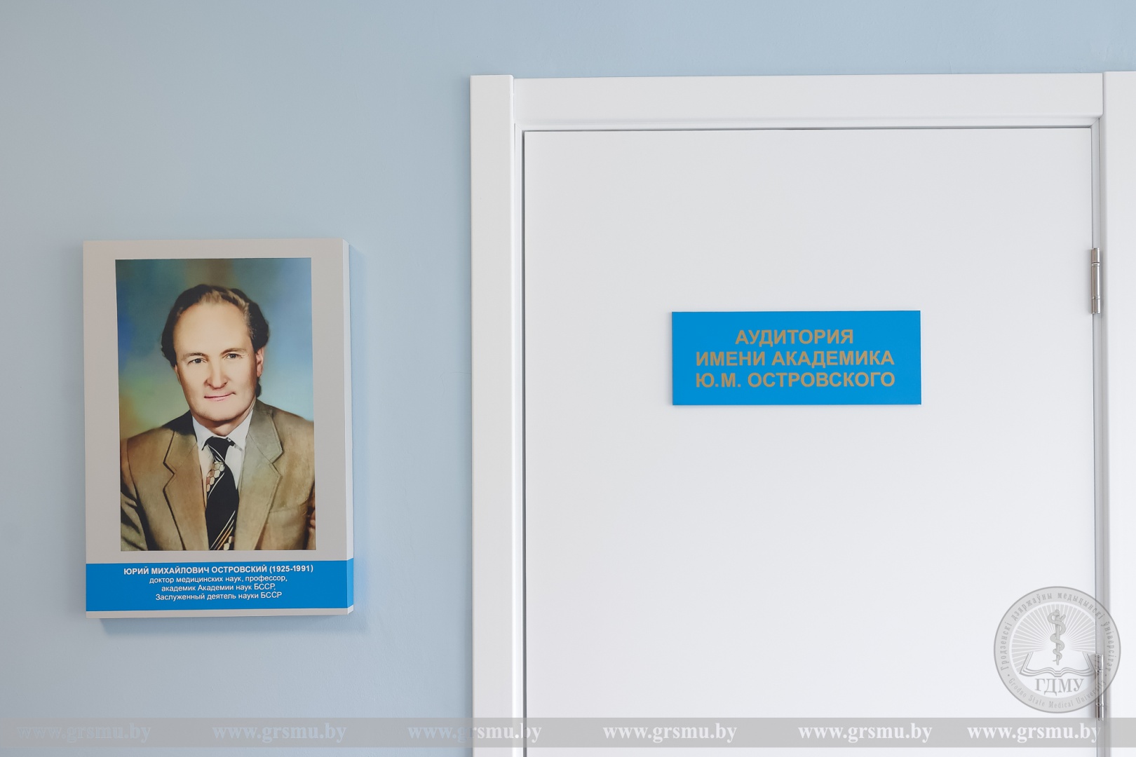 27 июня 2025 года на кафедре биологической химии состоялось торжественное открытие учебной аудитории имени академика Юрия Михайловича Островского - первого заведующего кафедры биохимии (аудитория 341).