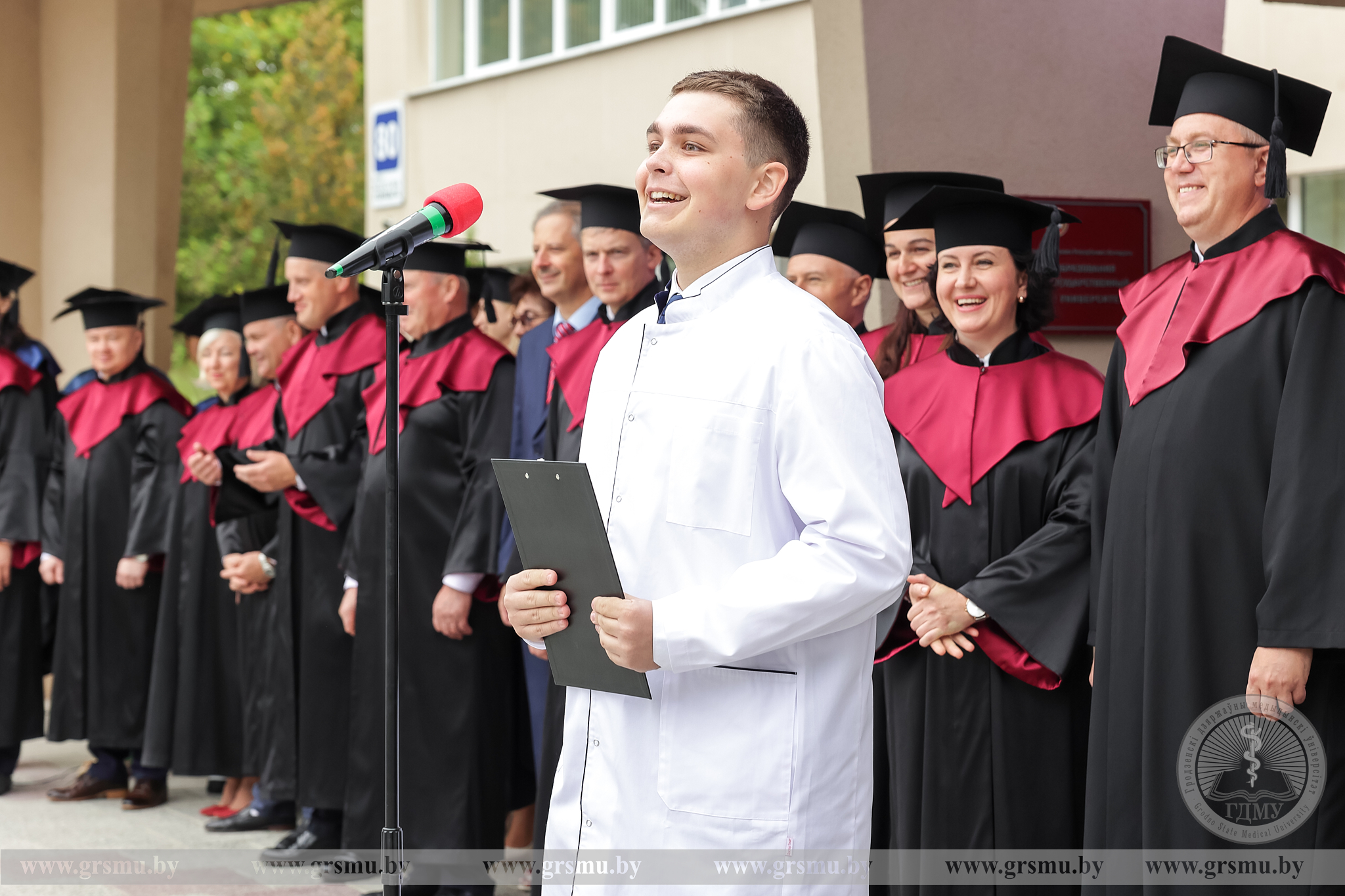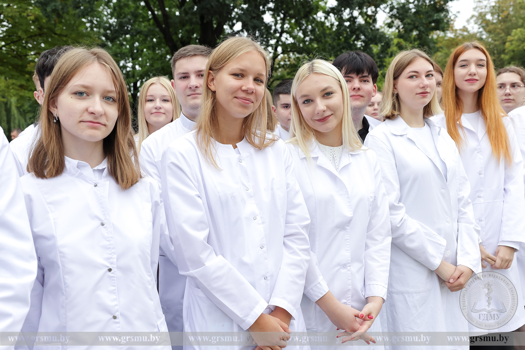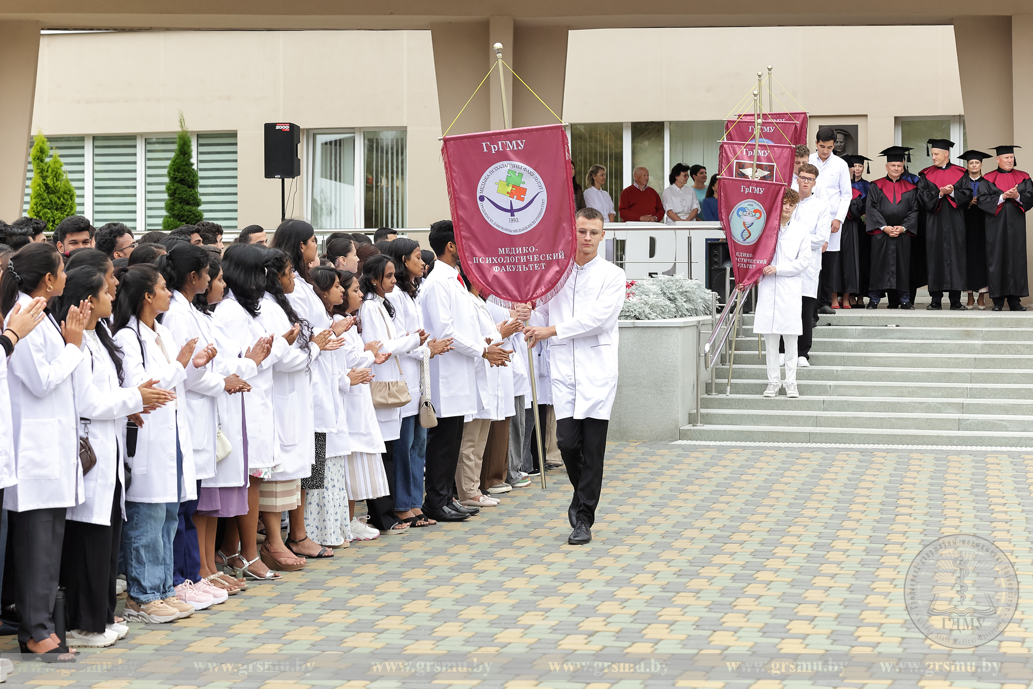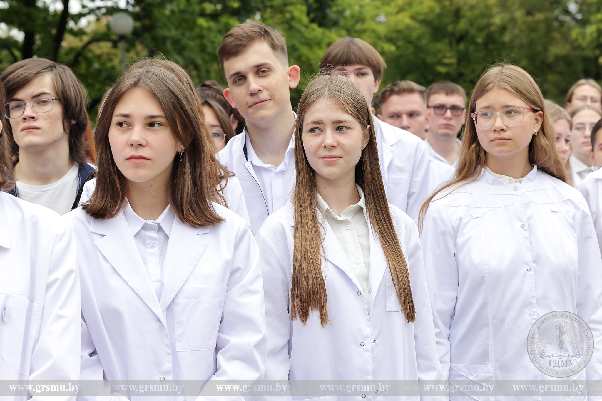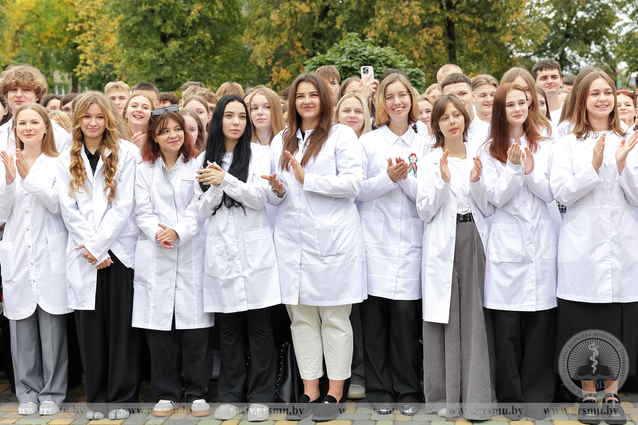 Удзел ва ўрачыстым мерапрыемстве прынялі члены рэктарата і дэканы факультэтаў. Першакурснікаў прывітаў рэктар Гродзенскага дзяржаўнага медыцынскага ўніверсітэта Ігар Георгіевіч Жук, а таксама ганаровыя госці ўрачыстага мерапрыемства: памочнік Прэзідэнта - інспектар па Гродзенскай вобласці Канстанцін Віктаравіч Бурак, першы намеснік начальніка галоўнага ўпраўлення аховы здароўя Гродзенскага абласнога выканаўчага камітэта Алена Паўлаўна Майсака, старшыня Уладзіслаў Рабертавіч Галяк, іерэй Гродзенскай епархіі Аляксандр Гук.
