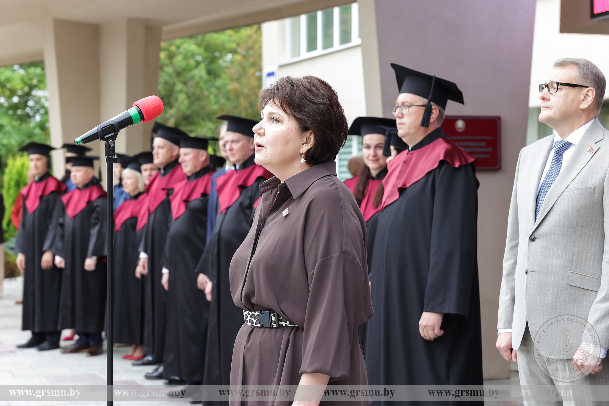 - Гэты дзень азначае для вас, дарагія першакурснікі, пачатак новага навучальнага года. Гэта ваш першы этап апускання ў самую высакародную прафесію на Зямлі - прафесію лекара. Няхай гэты год будзе напоўнены цікавымі адкрыццямі, магчымасцямі, плённай вучобай. Бо медыцына - гэта навука, якая пастаянна ўдасканальваецца. Сістэма аховы здароўя Гродзенскай вобласці мае патрэбу ў такіх, як вы, энергічных, мэтанакіраваных, маладых спецыялістах! Жадаю вам моцнага здароўя, удачы, няхай у вас усё атрымаецца!