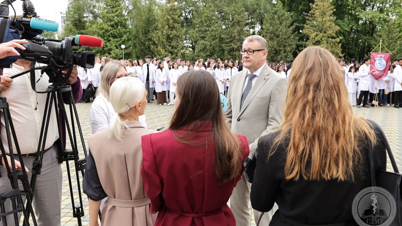 - Тут ужо сёмы дзясятак гадоў закладваецца падмурак майстэрства прадстаўнікоў самай гуманнай, адказнай і ганаровай прафесіі на зямлі - медыцынскай, - падкрэсліў Канстанцін Віктаравіч. – Асаблівыя віншаванні – першакурснікам! Для вас гэта першы год у новай якасці. Вы зрабілі важны крок да дарослага самастойнага жыцця, да сваёй будучыні. Наперадзе вас чакае цікавая і насычаная пара студэнцтва. Будзьце цікаўнымі і настойлівымі. Кожная засвоеная тэма, кожны здадзены залік - гэта цаглінка ў падмурак вашага будучага аўтарытэту лекара. Актыўна ўключайцеся не толькі ў адукацыйнае і навуковае, але і культурнае, спартыўнае жыццё ўніверсітэта. Поспех заўсёды спадарожнічае рознабакова развітым людзям. Тут прысутнічаюць не толькі нашыя суайчыннікі, але і студэнты з іншых дзяржаў. Шчыра жадаю, каб Беларусь стала для вас другой хатай і, вярнуўшыся на Радзіму, вы ўспаміналі праведзеныя тут гады з цеплынёй і каханнем, і каб менавіта гэтыя пачуцці клаліся ў аснову сучасных міжнародных адносін.