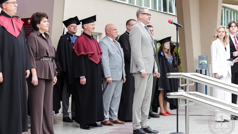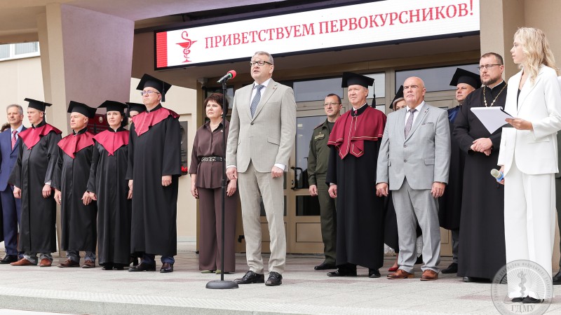 - Сёння першакурснікамі стануць 682 айчынныя студэнты, і каля 320 студэнтаў-першакурснікаў будуць навучацца на факультэце замежных навучэнцаў. Я ўпэўнены, што ў вас усё атрымаецца. Але памятайце, што студэнцкае жыццё - гэта не толькі вучоба. У нас створаны ўсе ўмовы для самарэалізацыі па розных напрамках - гэта спорт, мастацкая і навуковая дзейнасць, і многае іншае. Яшчэ раз віншую вас са святам! Жадаю вам здароўя, поспехаў у вучобе, і памятайце, што вы - студэнты лепшага універсітэта краіны! - падсумаваў рэктар.