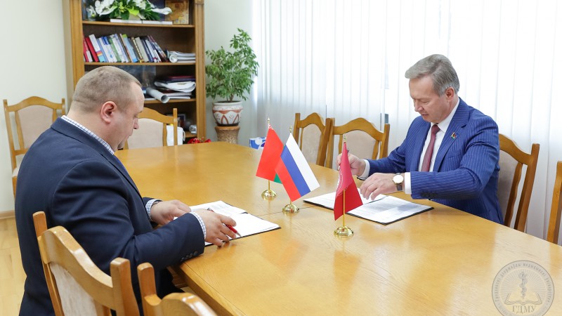 Аляксандр Уладзіміравіч Торба, рэктар Федэральнага дзяржаўнага бюджэтнага адукацыйнай установы вышэйшай адукацыі "Луганскі дзяржаўны медыцынскі універсітэт імя свяціцеля Лукі" Міністэрства аховы здароўя Расійскай Федэрацыі падпісаў з рэктарам Гродзенскага медыцынскага універсітэта дагавор аб супрацоўніцтве: