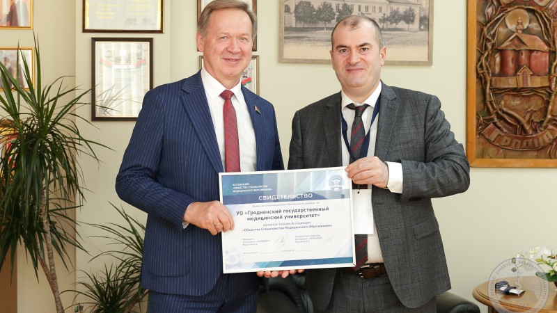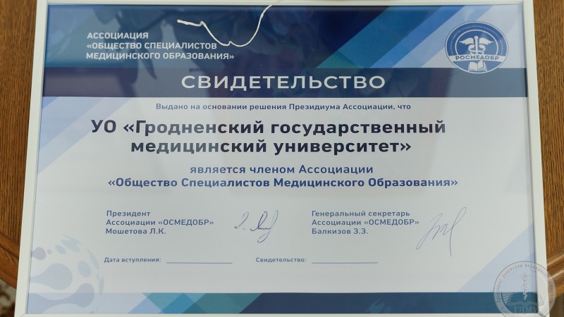 Залім Заміравіч Балкізаў, дырэктар Інстытута падрыхтоўкі спецыялістаў медыцынскай адукацыі ФГБОУ ДПО» Расійская медыцынская акадэмія бесперапыннага прафесійнага адукацыі "Міністэрства аховы здароўя Расійскай Федэрацыі, Генеральны сакратар Расійскага таварыства спецыялістаў медыцынскай адукацыі, прафесар кафедры арганізацыі прафесійнай адукацыі і адукацыйных тэхналогій ФГАОУ ва" Расійскі нацыянальны даследчы медыцынскі універсітэт імя М. і. Пірагова " Міністэрства аховы здароўя РФ, урачыста ўручыў рэктару ГрГМУ Ігару Георгіевічу Жуку пасведчанне аб членстве УА» Гродзенскі дзяржаўны медыцынскі універсітэт «у Асацыяцыі» Таварыства спецыялістаў медыцынскай адукацыі " (РОСМЕДОБР).