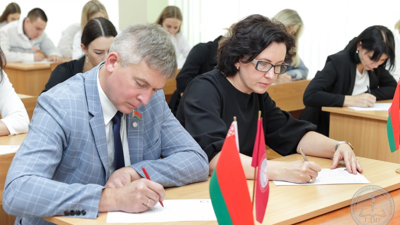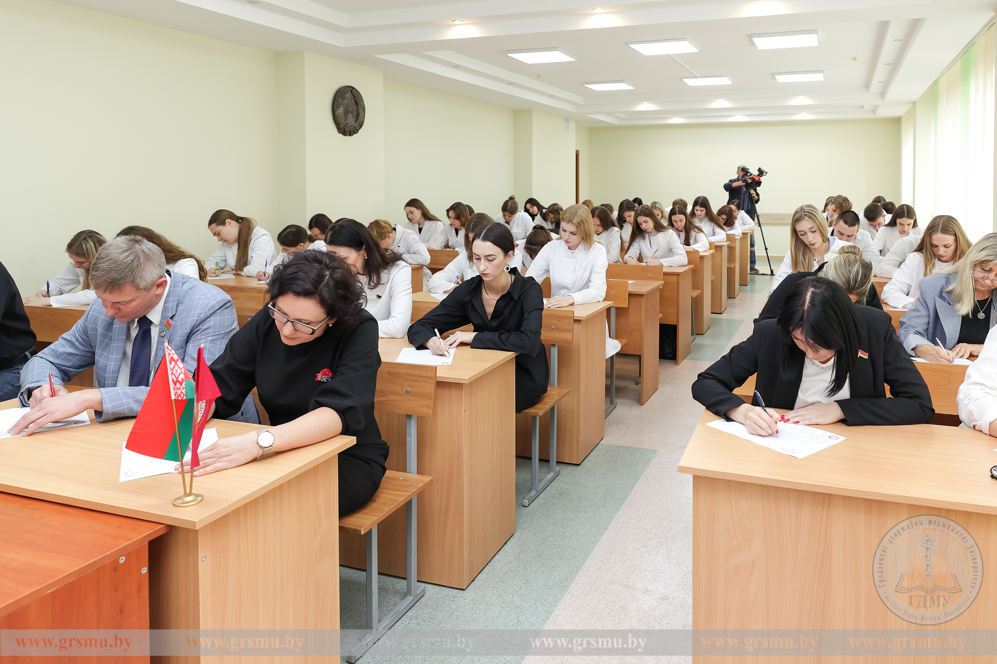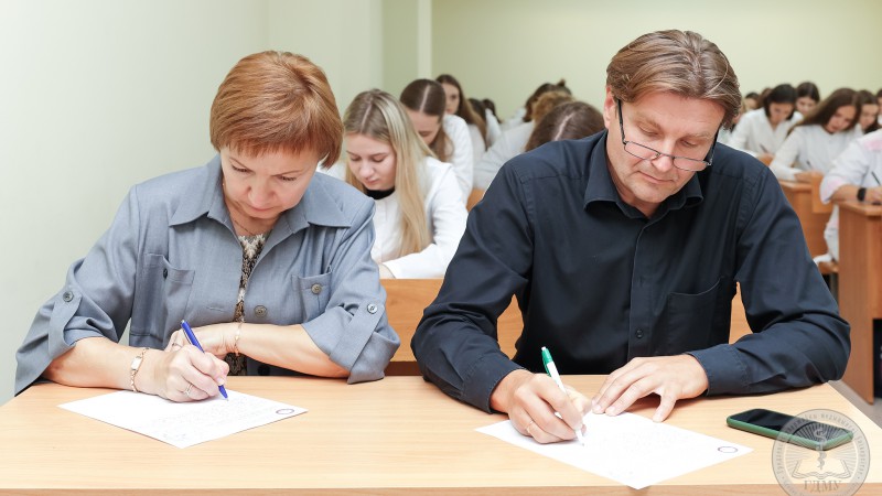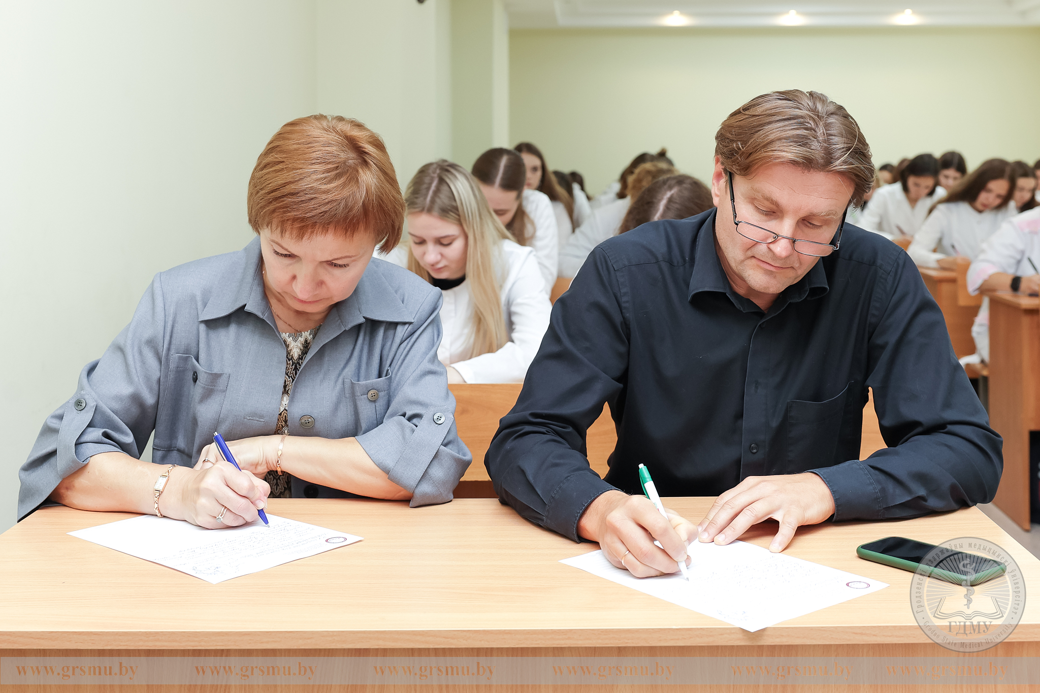 Кіраўніцтва ГрДМУ таксама далучылася да напісання рэспубліканскай дыктоўкі. Па словах прарэктара па навуковай рабоце Міхаіла Мікалаевіча Курбата, удзел у маштабных рэспубліканскіх акцыях — гэта агульны абавязак:
