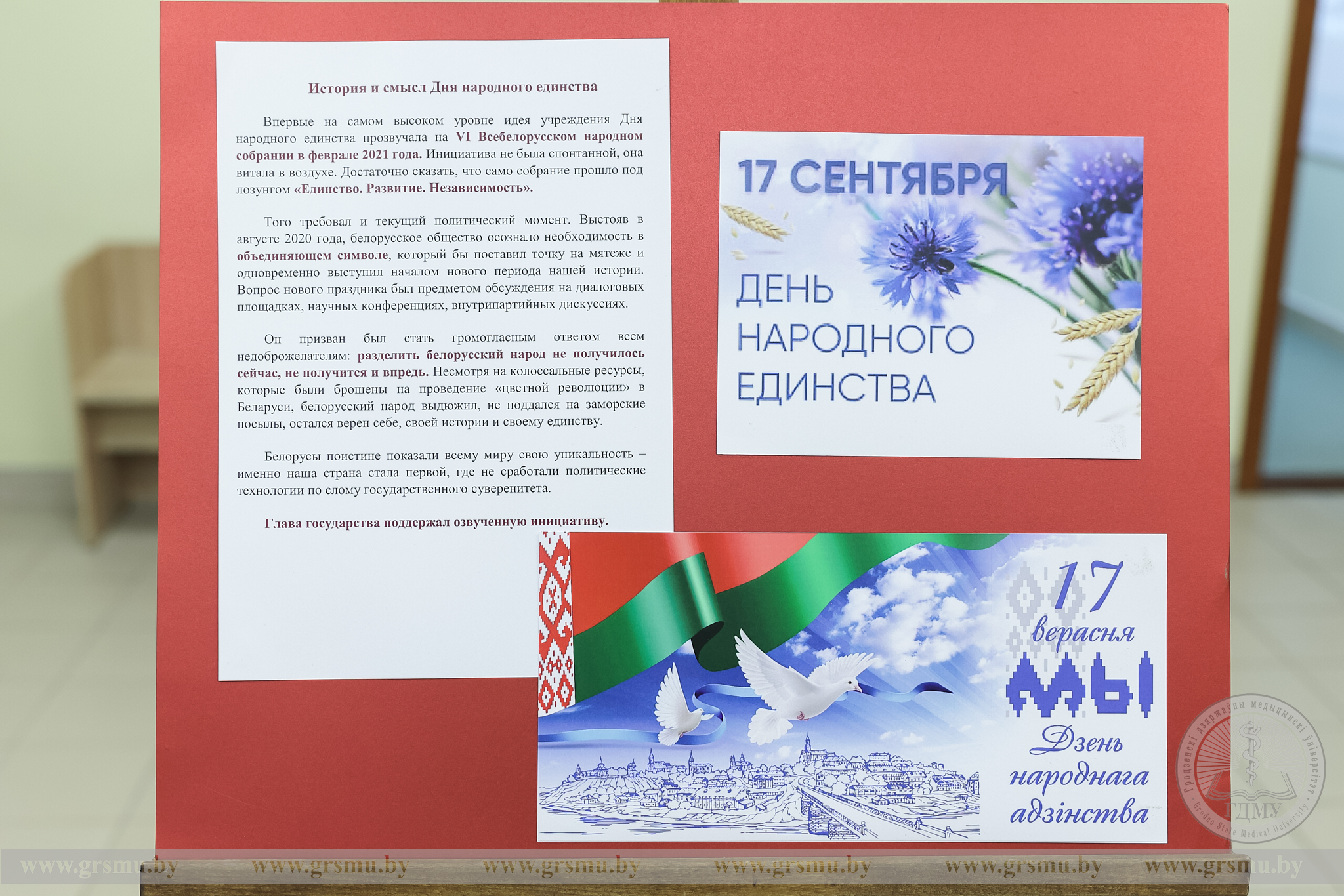 У Беларусі да Дня народнага адзінства прымеркавана вялікая колькасць грамадска-палітычных і патрыятычных мерапрыемстваў. Шэраг мерапрыемстваў пройдзе і ў Гродзенскім дзяржаўным медыцынскім універсітэце.