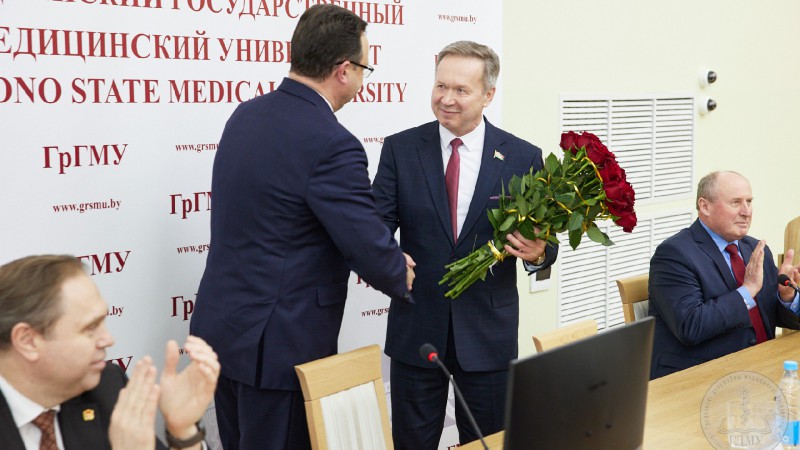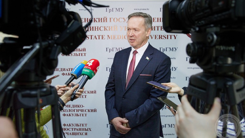 – Я вельмі рады, што мая Аlma mater атрымала добрага, удумлівага і адкрытага да ўсяго рэктара. У Гродзенскім медуніверсітэце граматны прафесарска-выкладчыцкі склад. Таму я заўсёды паўтараў, што карпусы, медыцынскае абсталяванне - гэта ўсяго толькі халодны метал, халодны бетон. Галоўнае - гэта людзі, і важна эфектыўна вучыць і рыхтаваць будучых медыцынскіх работнікаў. Я спадзяюся, што і надалей наша цеснае супрацоўніцтва працягнецца.