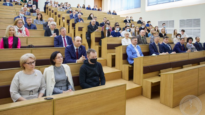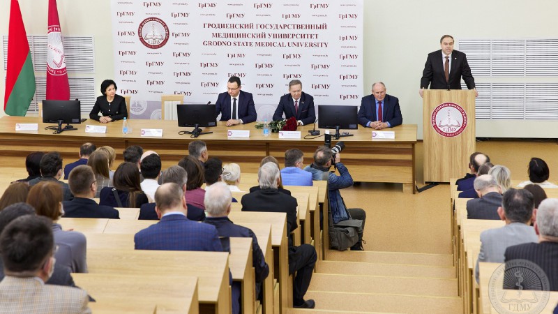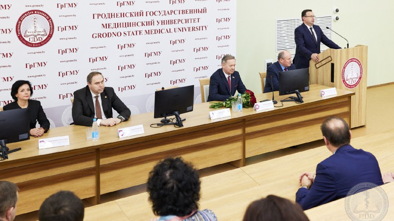 Ва ўрачыстым сходзе прынялі ўдзел міністр аховы здароўя Рэспублікі Беларусь Дзмітрый Леанідавіч Піневіч, старшыня Гродзенскага аблвыканкама Уладзімір Сцяпанавіч Каранік, начальнік галоўнага ўпраўлення аховы здароўя Гродзенскага аблвыканкама Людміла Мікалаеўна Кеда, першы прарэктар Гродзенскага дзяржаўнага медыцынскага ўніверсітэта Віталь Уладзіміравіч Вараб'ёў.