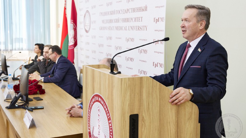 Старшыня Гродзенскага аблвыканкама Уладзімір Сцяпанавіч Каранік, звяртаючыся да прысутных, адзначыў, што Гродзенскі медыцынскі ўніверсітэт атрымаў адукаванага, вопытнага і дастойнага кіраўніка: