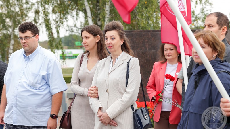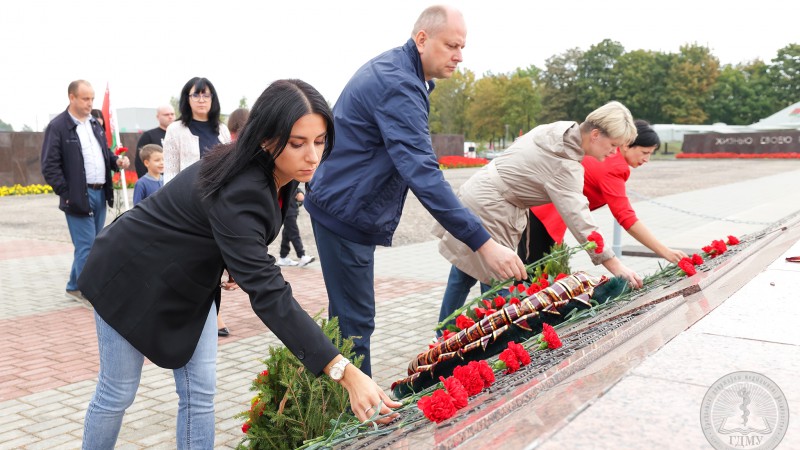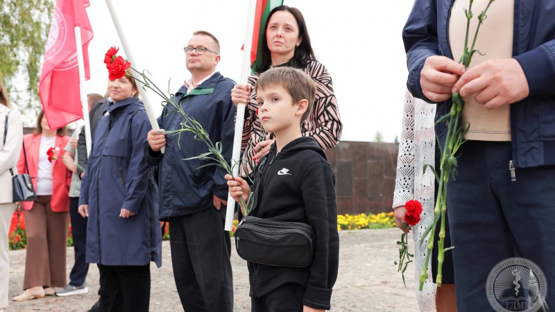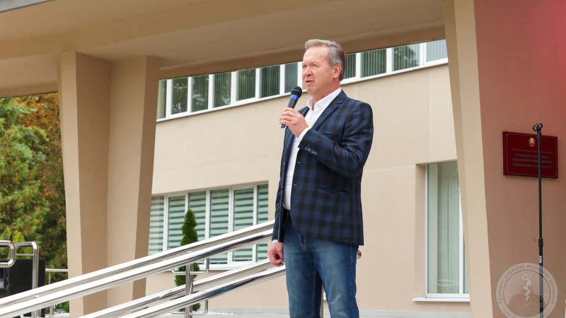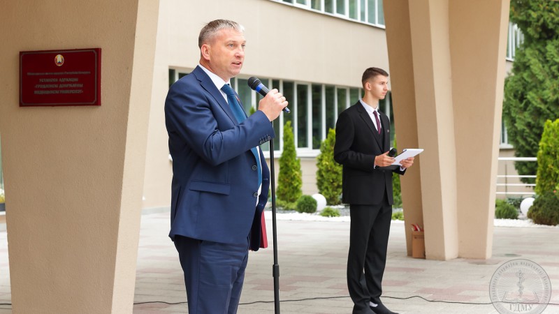 - Сёння мы праводзім заключны дзень юбілейнага тыдня, прысвечанага 65-годдзю з дня ўтварэння Гродзенскага дзяржаўнага медыцынскага ўніверсітэта. Тыдзень атрымаўся насычаным, мы разам правялі дзясяткі знакавых мерапрыемстваў – гэта і Дзень спорту, гістарычнай памяці, моладзі, навукі і многія іншыя. Удзел ва ўрачыстасцях прынялі нашы ветэраны, настаўнікі і настаўнікі, калегі і партнёры, і, вядома ж, нашы студэнты! Тыдзень заканчваецца яшчэ адной яркай і неардынарнай падзеяй, калі мы з удзелам самых прагрэсіўных грамадскіх аб'яднанняў нашай краіны праводзім аўтаматапрабег, з ускладаннем кветак да мемарыяльнага комплексу «Курган Славы», тым самым ушанаваўшы памяць усіх тых, хто заваёўваў наш суверэнітэт, цаной свайго жыцця дамогся перамогі ў Вялікай Айчыннай вайне. Герояў, партызан, падпольшчыкаў, воінаў, працаўнікоў тылу, – мы ніколі не забудзем! Іх подзвіг прывёў да таго, што мы доўгія-доўгія гады жывем пад мірным небам! Паважаныя студэнты, вы-наша будучыня, памятайце, што вы грамадзяне Рэспублікі Беларусь, і ганарліва нясіце гэта ганаровае званне! Дарагія сябры, я яшчэ раз віншую ўсіх з нашым юбілеем!