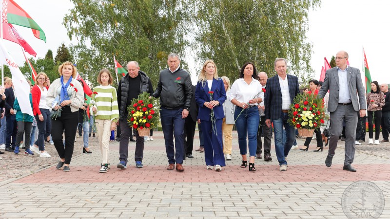 – Мемарыяльны комплекс «Курган Славы» – гэта адна са святынь не толькі Гродзеншчыны, але і ўсёй Беларусі. Яго ўзвялі ў імя тых, хто аддаў свае жыцці ў Вялікай Айчыннай вайне, каб мы з вамі жылі пад мірным небам, – адзначыла падчас ускладання кветак начальнік аддзела па сувязях з грамадскасцю і маркетынгу Вольга Уладзіміраўна Сізова. Мемарыяльны комплекс быў закладзены 17 верасня 1968 года. Калі яго ўзводзілі, з усёй Гродзеншчыны, з 83 месцаў, была прывезена зямля з брацкіх магіл, з месцаў пахавання герояў Савецкага Саюза, партызан, падпольшчыкаў. Таму гэтае месца стала сапраўднай святыняй. Роўна праз год у 1969 годзе Курган Славы быў адкрыты. Для нашчадкаў тут была закладзена капсула памяці, у 2021 годзе ва ўрачыстай абстаноўцы ў Сенатарскай зале Новага замка капсула была адкрыта. А 17 верасня 2021 года была закладзена новая капсула, ужо для наступнага пакалення і яе плануюць ускрыць у 2050 годзе. І перш, чым мы прыступім да ўскладання кветак, ушануем памяць хвілінай маўчання загінуўшых герояў.