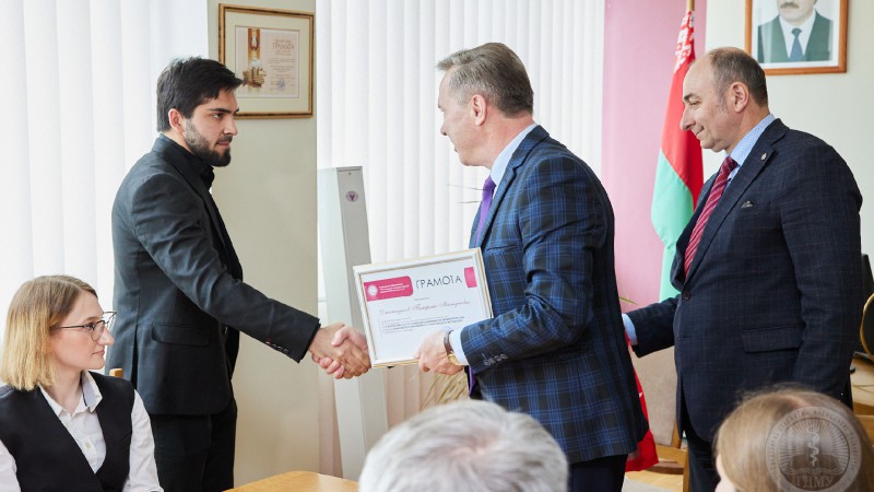 - Ад імя кіраўніцтва ўніверсітэта ўшаноўваем нашых выдатных, адораных, таленавітых студэнтаў. Перамога на Усерасійскай студэнцкай алімпіядзе па кардыялогіі - гэта дастойны вынік, які пацвярджае імідж не толькі універсітэта, а ў цэлым медыцынскай адукацыі нашай краіны. Мы ганарымся такімі поспехамі! У ГрДМУ для студэнцтва створаны і ствараюцца ўсе ўмовы, каб нашы хлопцы знайшлі сябе і ў практычнай ахове здароўя, і ў навуковай сферы. Ва ўсіх пачынаннях мы, безумоўна, падтрымліваем студэнтаў!