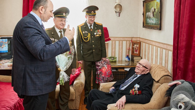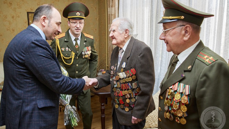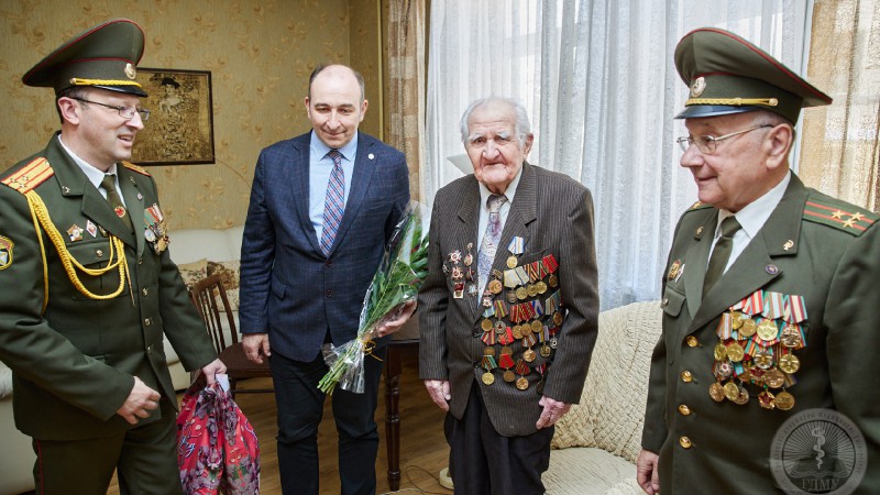 У гэтыя перадсвяточныя дні ветэраны прымалі гасцей у сябе дома. Павіншаваць іх прыехалі прарэктар па выхаваўчай рабоце, кандыдат медыцынскіх навук, дацэнт Ігар Пятровіч Багдановіч, начальнік ваеннай кафедры, кандыдат медыцынскіх навук, дацэнт, палкоўнік м/с Уладзімір Аляксандравіч Наваселецкі і старшыня ветэранскай арганізацыі медуніверсітэта, кандыдат медыцынскіх навук, дацэнт ваеннай кафедры, палкоўнік м /з у адстаўцы Васіль Міхайлавіч Івашын.
