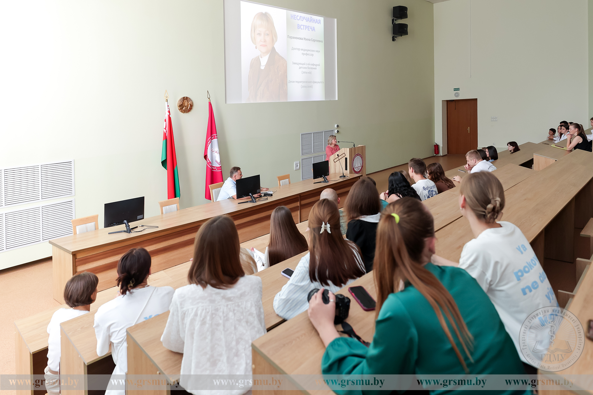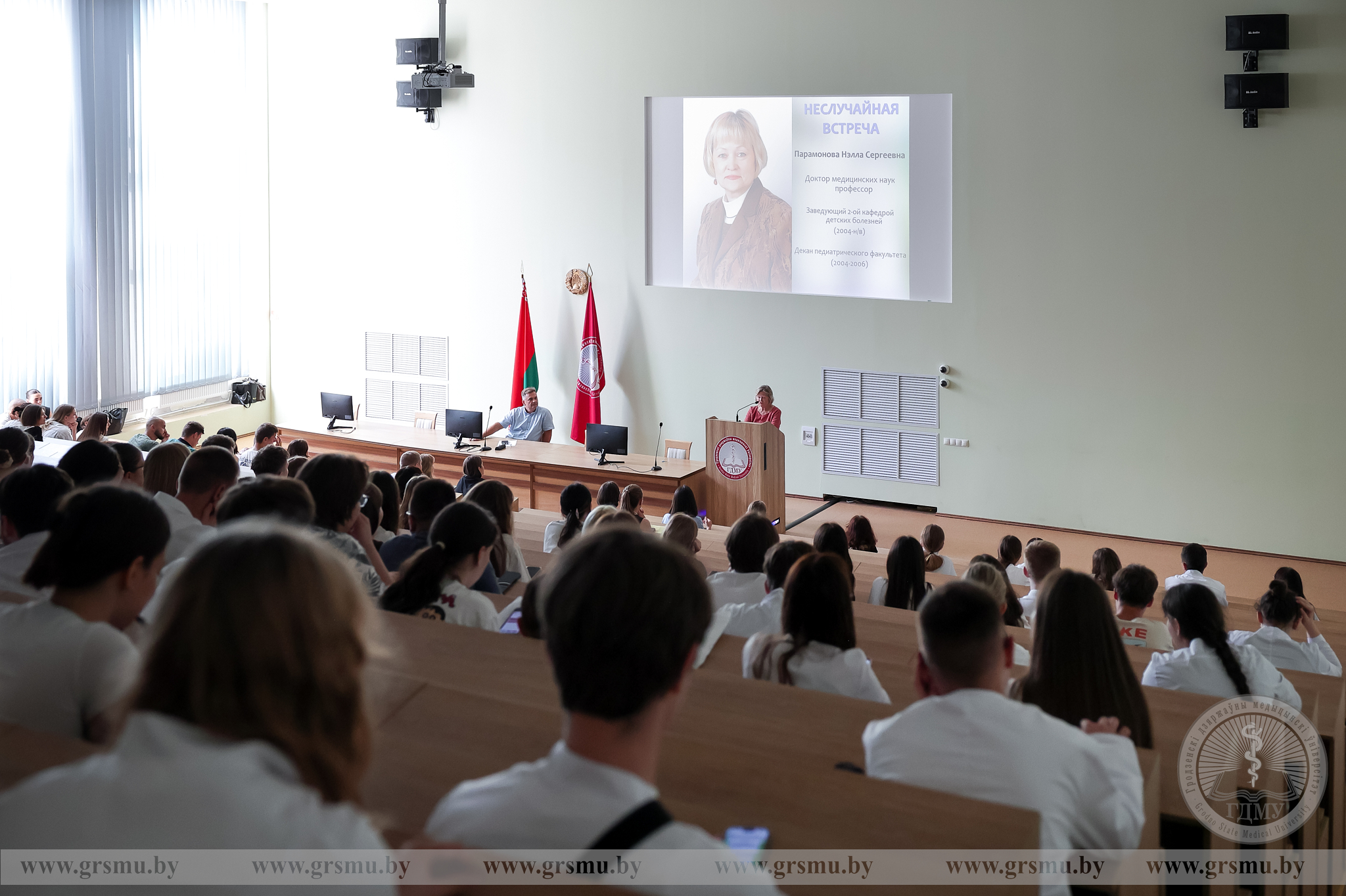 У рамках традыцыйнага тыдня знаёмства з універсітэтам і рэспубліканскіх мерапрыемстваў "Месяца першакурсніка" 3 верасня адбыліся "Невыпадковыя сустрэчы" студэнтаў-першакурснікаў з тымі, хто ўжо прайшоў гэты шлях і стаў гонарам ВНУ - вядомымі выпускнікамі, заслужанымі ўрачамі і выкладчыкамі Гродзенскага дзяржаўнага медыцынскага ўніверсітэта.