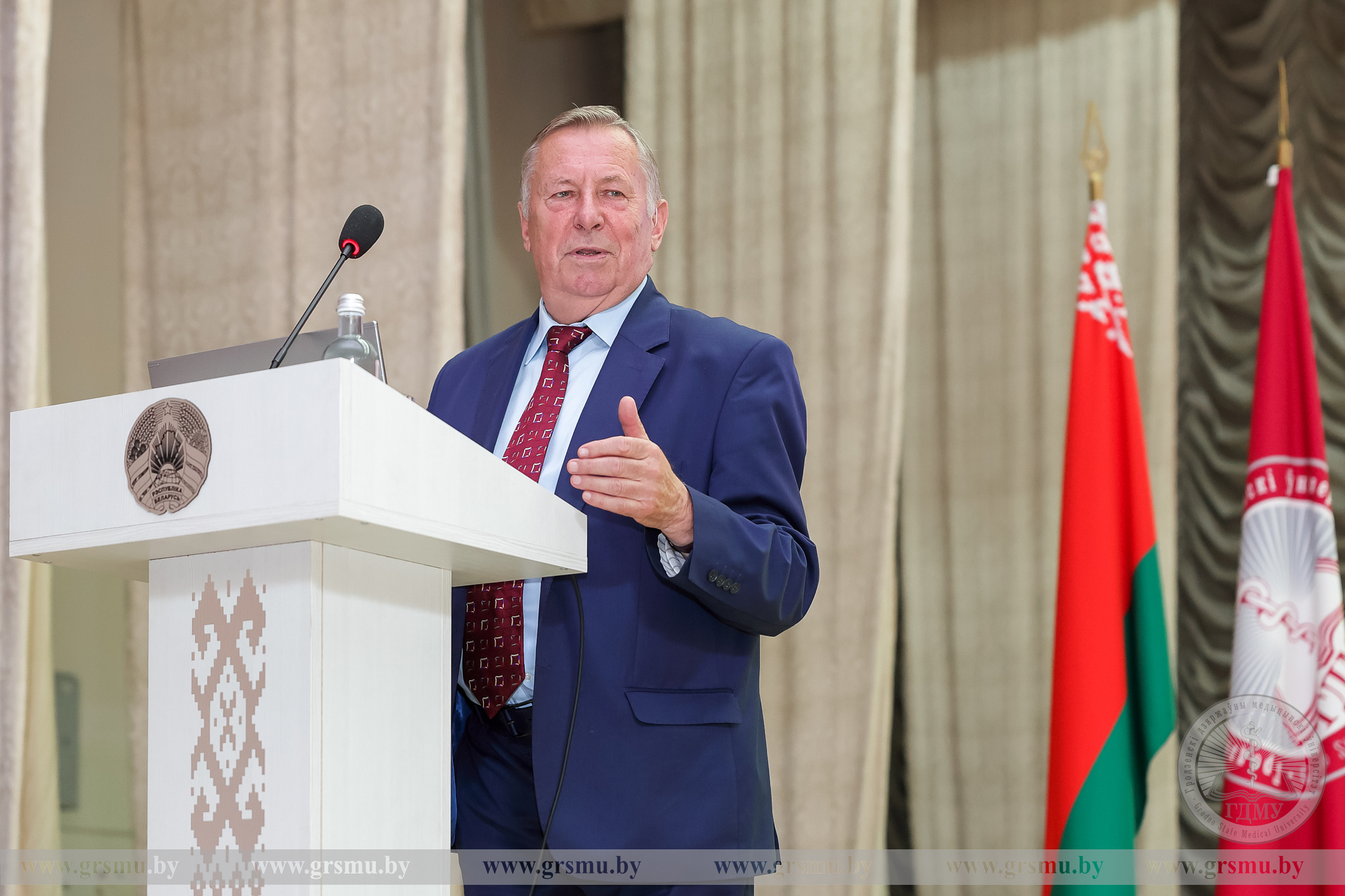 Студэнты 1 курса лячэбнага факультэта атрымалі магчымасць паразмаўляць са знакамітым выпускніком ВНУ, загадчыкам кафедры агульнай хірургіі Пятром Васільевічам Гарэлікам.