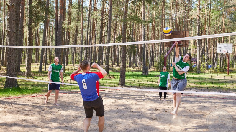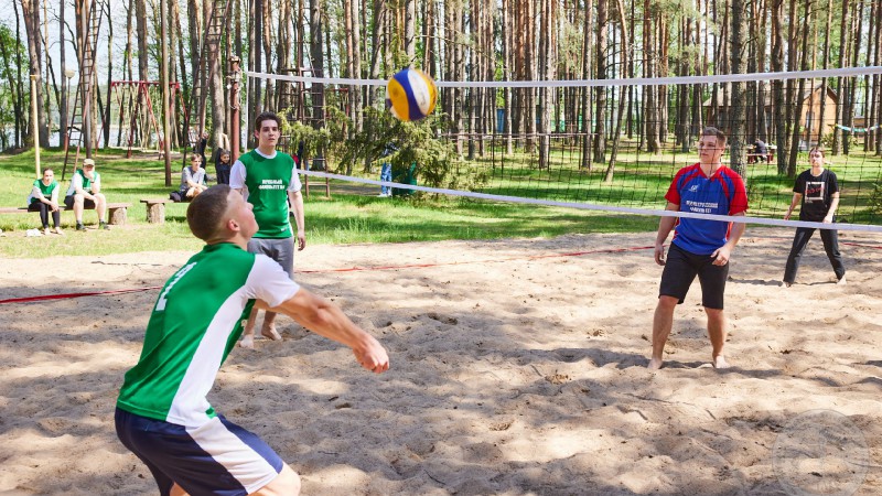 - У гэтым годзе ўдзел у студэнцкім турзлёце прымаюць 7 каманд, а гэта 70 чалавек - прадстаўнікі ўсіх факультэтаў. У першы дзень спаборніцтвы прайшлі па розных напрамках: пляжны валейбол, міні-футбол, узняцце гіры, эстафета, настольны тэніс. Спартыўная частка праграмы працягнулася да 7 вечара, а пасля пачалася творчая частка - песні ля вогнішча, прэзентацыя каманд, дыскатэка. За кожны этап камандам налічваліся балы, - распавёў Мікалай Міхайлавіч Віршыч.