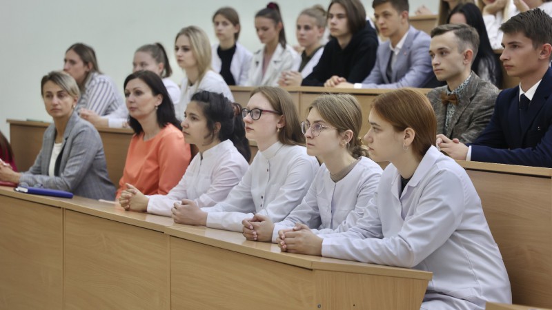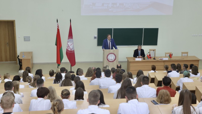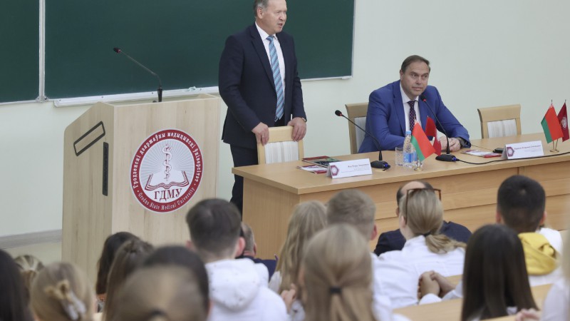 - У Гродзенскім медыцынскім універсітэце ўжо стала добрай традыцыяй праводзіць сустрэчы са студэнцтвам, калі на іх прысутнічаюць кіраўнікі краіны, вобласці, знакамітыя людзі, заслужаныя лекары, прафесары, навукоўцы. Бо гэтыя сустрэчы дапамагаюць узбагаціцца ўзаемна. З аднаго боку, яны дапамагаюць даведацца бліжэй за вас, студэнтаў, з другога - мы, безумоўна, спрабуем перадаць свой жыццёвы вопыт, даць парады, - сказаў падчас сустрэчы са студэнтамі рэктар Гродзенскага дзяржаўнага медыцынскага універсітэта Ігар Георгіевіч Жук.