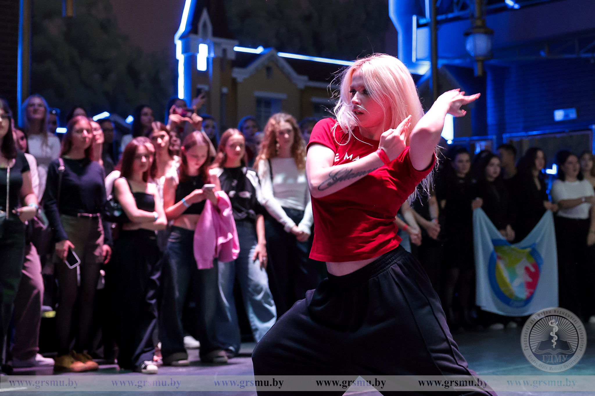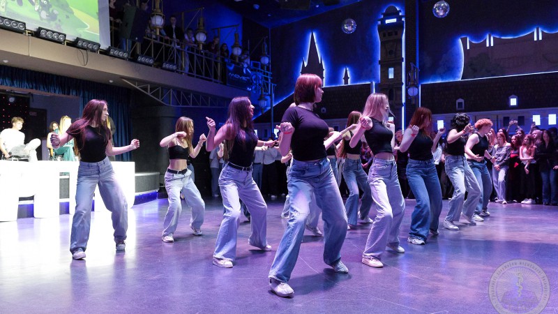 Свята пачалося з палымянага танцавальнага нумара, які адразу ж узняў усім настрой. Першакурснікі, старшакурснікі, дэканы і супрацоўнікі дэканатаў з задавальненнем прынялі ўдзел у масавым флэшмобе.
