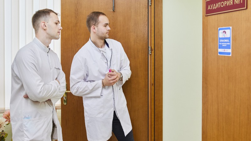- Усяго хлопцы здаюць 4 экзамены: першыя два - унутраныя хваробы і хірургічныя хваробы, іх прайшлі паспяхова. На гэтым тыдні здаюць іспыт па акушэрстве і гінекалогіі, завяршальны будзе па грамадскім здароўі і ахове здароўя, - распавёў дэкан лячэбнага факультэта Андрэй Віктаравіч Болтач. - Дзяржаўныя іспыты ў гэтым годзе здаюць 296 студэнтаў лячэбнага факультэта, плануецца 58 выпускнікоў з чырвонымі дыпломамі.