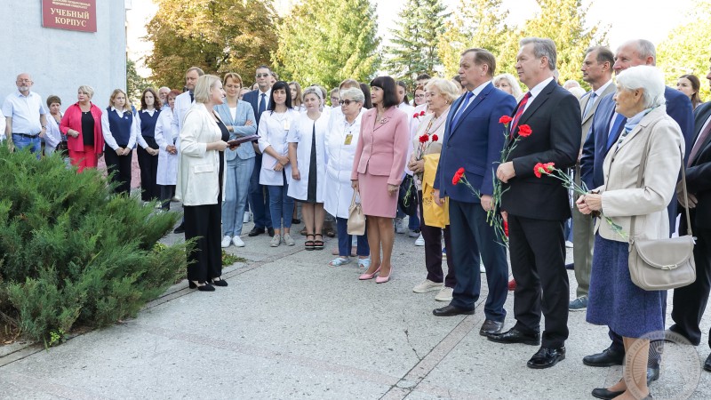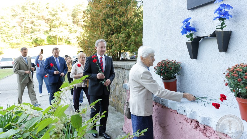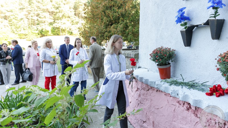 Перад адкрыццём мемарыяльнага кабінета-музея Юрыя Міхайлавіча Астроўскага кіраўніцтва універсітэта, супрацоўнікі і вучні ўсклалі кветкі да мемарыяльнай дошцы вучонага, тым самым ушанаваўшы памяць знакамітага акадэміка.