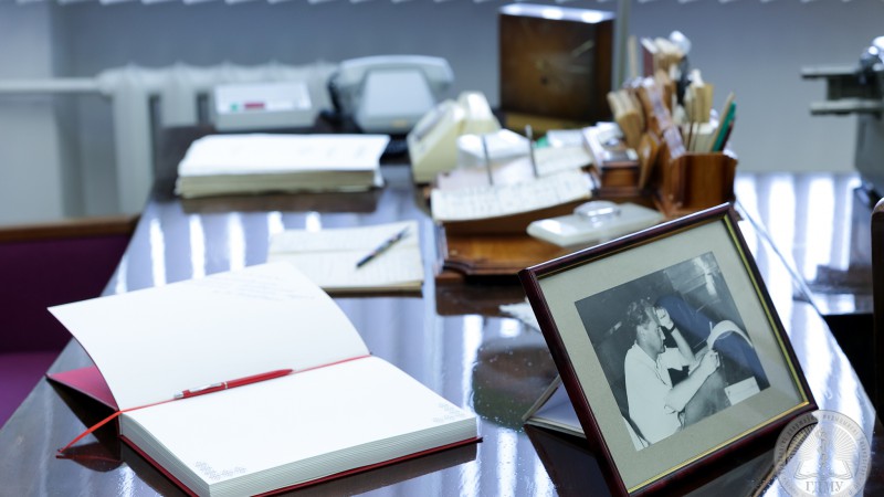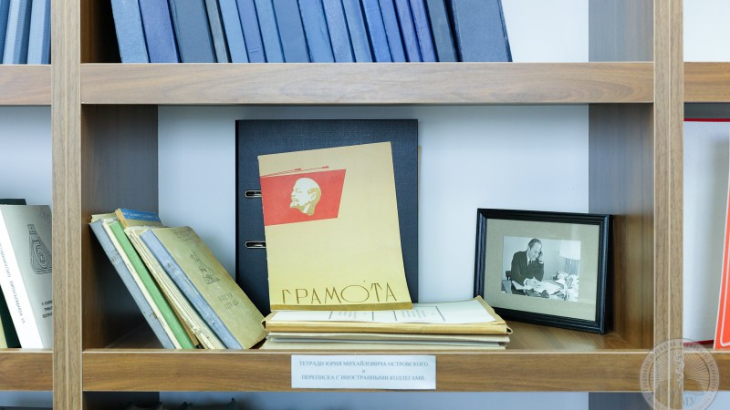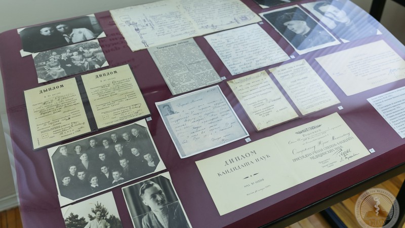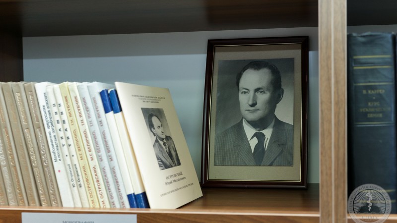 - Кабінет-музей з'явіўся ў 1992 годзе, пасля скону Юрыя Міхайлавіча Астроўскага. Сёлета па ініцыятыве рэктара адбылося яго маштабнае абнаўленне. Працоўны стол, таршэр, лямпа, тэлефон, – практычна ўсё, што прадстаўлена ў музеі, належала акадэміку, – распавяла загадчык музея гісторыі ГрДМУ Яна Вітальеўна Законнікава. - Сярод экспанатаў-дысертацыі яго вучняў, працы Юрыя Міхайлавіча, кнігі, узнагароды, медалі, граматы. Кожная вітрына нашага музея распавядае пра пэўны перыяд жыцця Юрыя Міхайлавіча. Пры стварэнні музея мы звярталіся, у першую чаргу, па дапамогу да яго вучняў. Яны перадалі ў музеі каштоўныя экспанаты, і таксама кансультавалі, каб дапамагчы ўзнавіць выгляд кабінета пры жыцці акадэміка.