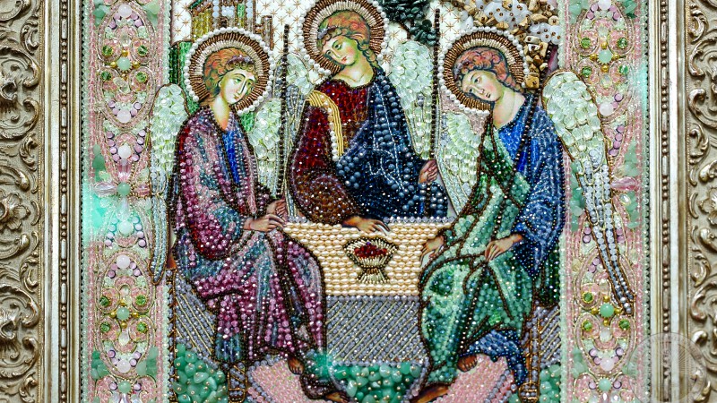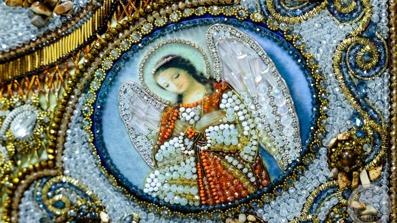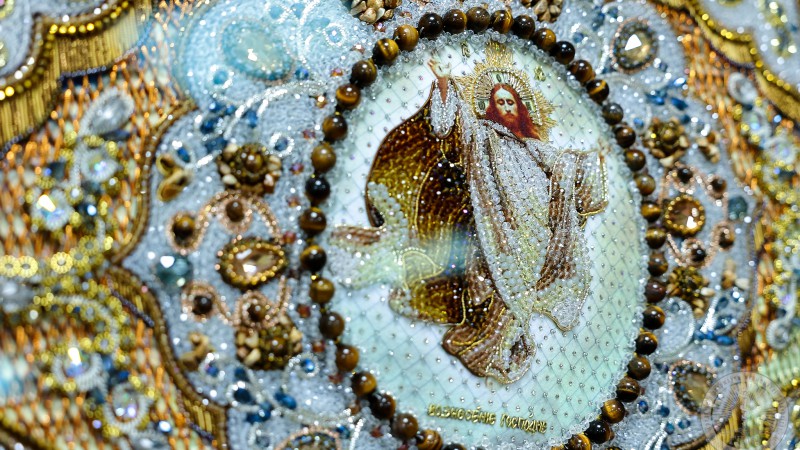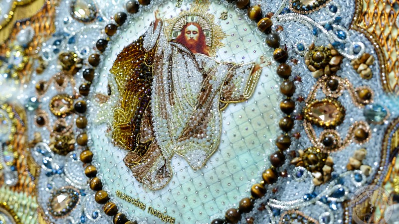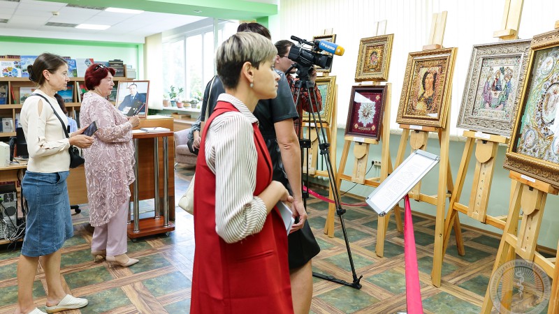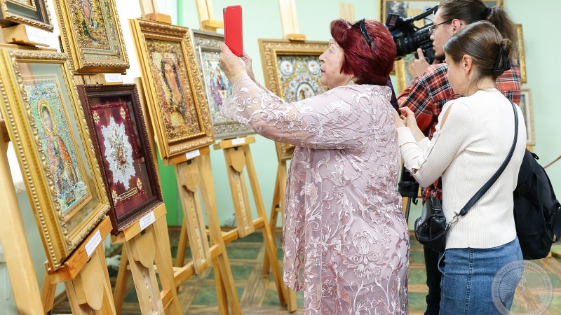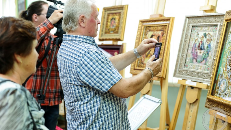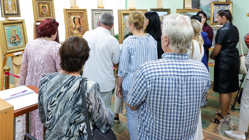 Сёння ў экспазіцыі прадстаўлены 11 работ, уся ж калекцыя складаецца з 33. Апранутыя яны ва ўбранне з сапраўдных каменняў, вышытыя па тэхналогіі вышывання крыштальнымі пацерамі і натуральнымі напаўкаштоўнымі каменнямі студыі вышыўкі «выявы ў каменях» (Расія, Маскоўская вобласць, г.Протвино) і з блаславення Рускай Праваслаўнай Царквы. Афармленнем абразоў займалася багетная майстэрня» Арт-аб'ект " горада Гродна.
