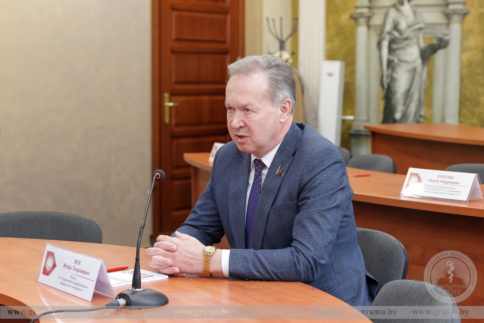 On the first day, on April 6, within the framework of international institutional accreditation a meeting of IAAR experts with the administration of GrSMU, heads of academic and structural departments and academic staff took place. In parallel, a survey and visual inspection of the university's educational bases and centers were conducted.