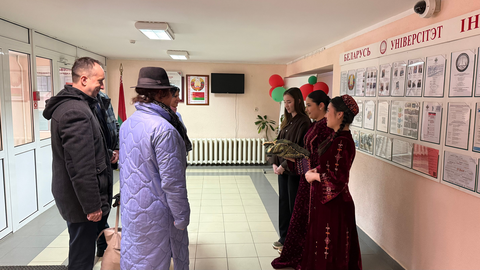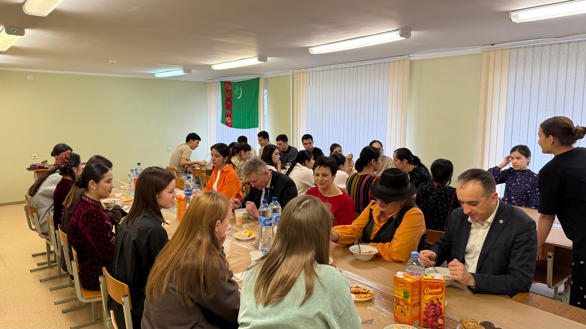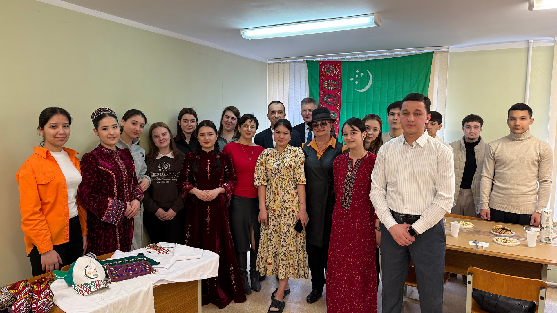 They greeted guests with traditional “pishme” (deep-fried pieces of dough) and treated them to “dograma” (a mixture of finely chopped lamb, fresh onions and special bread called “chorek” topped with hot broth) at the festive table. The students also prepared a thematic exhibition displaying attributes of their national culture.