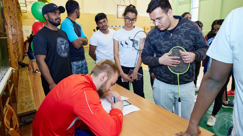 On the first day, sports competitions for international students called "Sports for All" were held. Teams from India, Sri Lanka, Maldives, Turkmenistan, Nigeria as well as guests from the Yanka Kupala State University of Grodno took part in it. The competition included a checkers, darts, tennis, and badminton. There was also held an amateur tournament of tic-tac-toe among students. Sports competitions traditionally attract a large number of students.