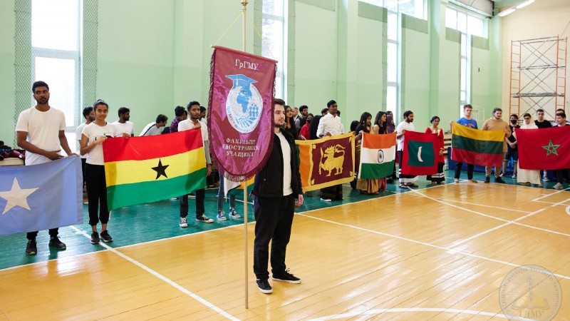 Ihar Zhuk, Rector of Grodno State Medical University, Ihar Bahdanovich, Vice-rector for social affairs , Alexander Stenko, Dean of the Faculty for International Students, Liudmila Gushchyna, Zoya Lemiasheuskaya, Sub-Dean for extra-curriculum activities Nadezhda Mishonkova, teachers of physical training and sports department took part in the opening ceremony.