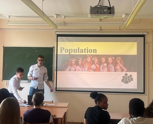 On 05/31/2024, a joint lesson was held at the Department of Foreign Languages ​​between Belarusian 1st year students studying English (lecturer, associate professor L.N. Huschyna) and foreign students speaking English. The topic of the lesson was “Collecting anamnesis”. The doctors were Belarusian students, and the patients were foreign students. Also during the lesson, students became acquainted with the customs, traditions and national cuisines of the countries from which they are from.