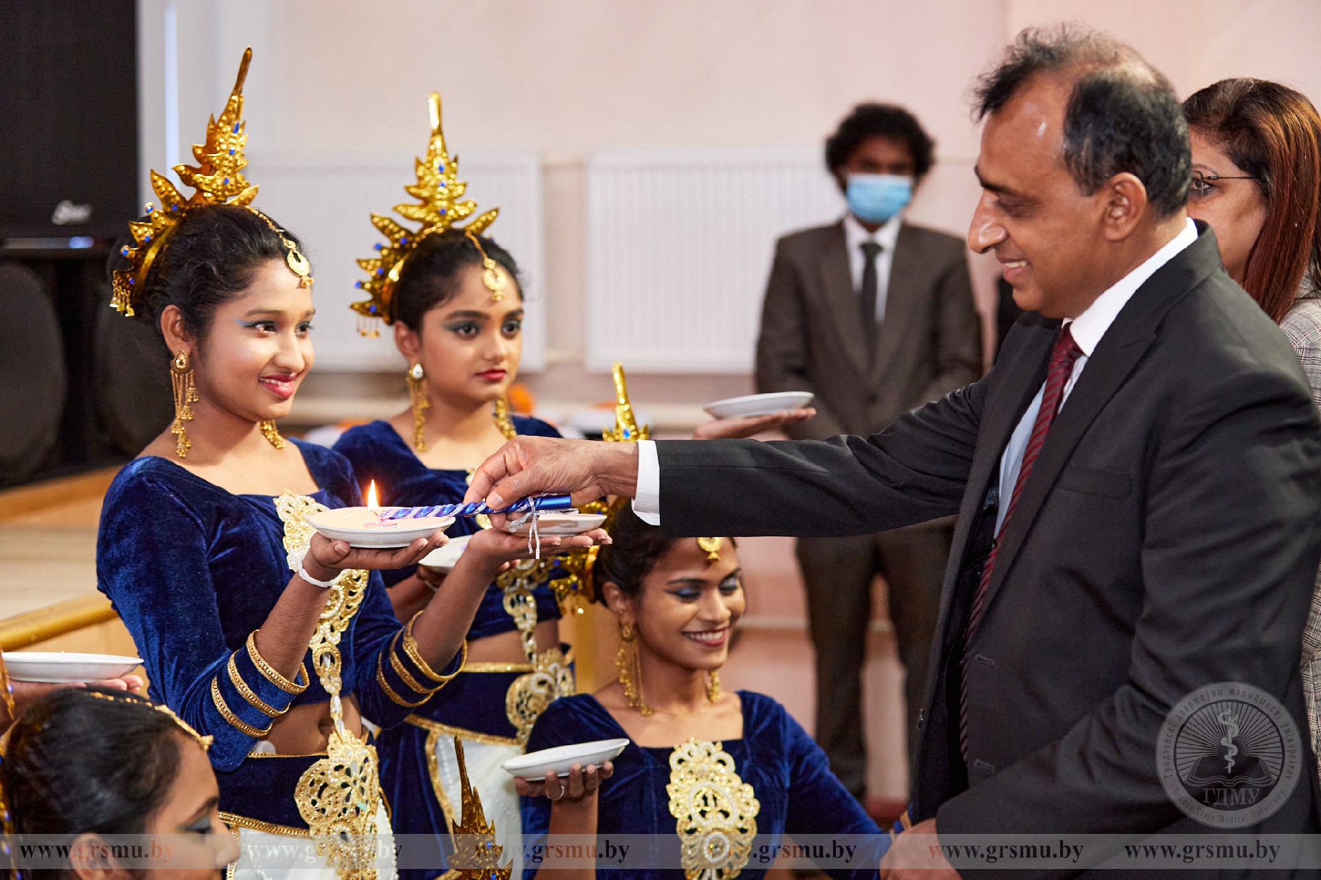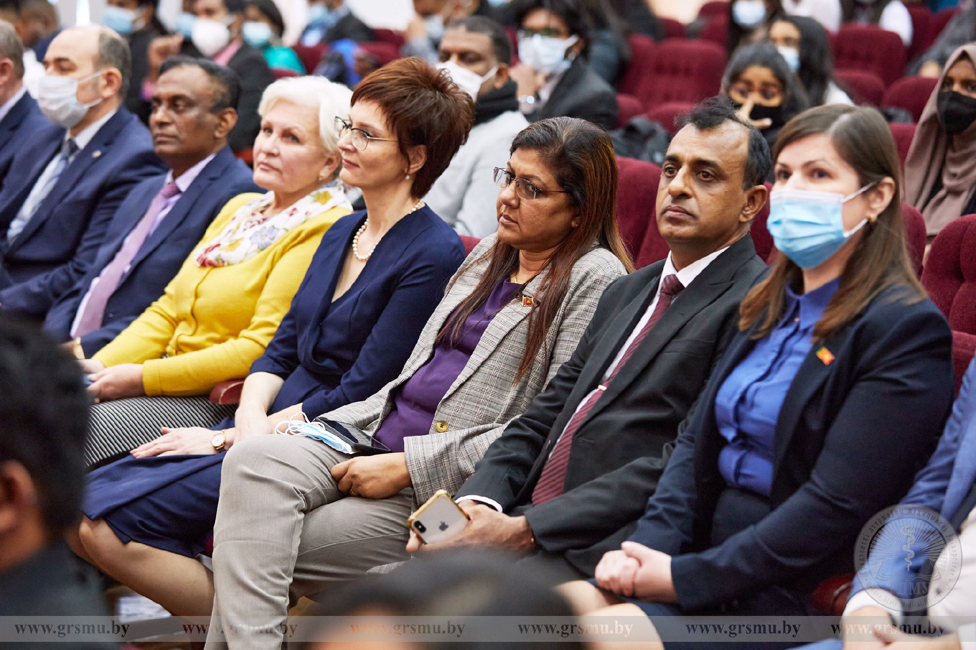 Before meeting the students of the Faculty for International Students, Ambassador Janita A. Liyanage visited a creative exhibition presented in the lobby in front of the assembly hall. Students have prepared many pieces showing the cultural characteristics of the people. The exhibition included unusual jewelry, items of arts and crafts, and, of course, national identity. After the demonstration of the exposition, the students showed their creative performances. Colorful bright dances, songs and hospitality did not leave anyone indifferent. During the concert, a video was shown about the foreign students’ life at Grodno State Medical University, which for several years became a second home for foreign students.