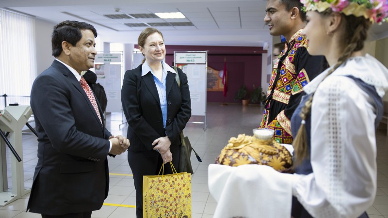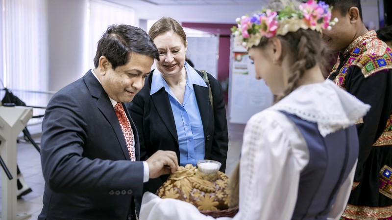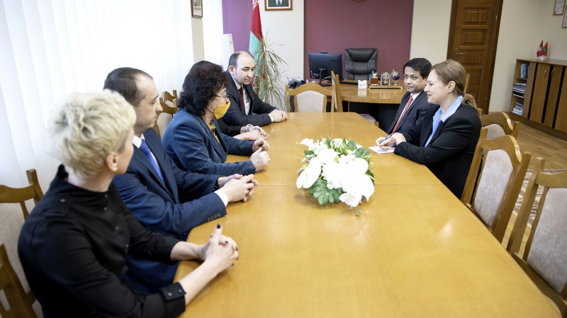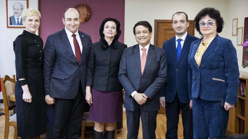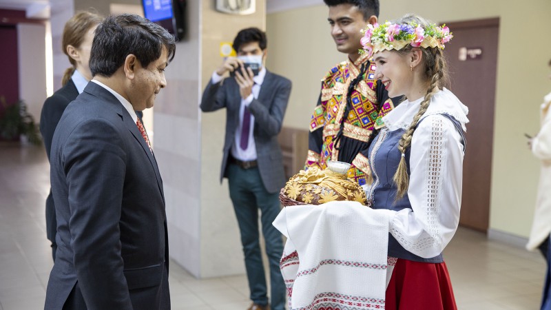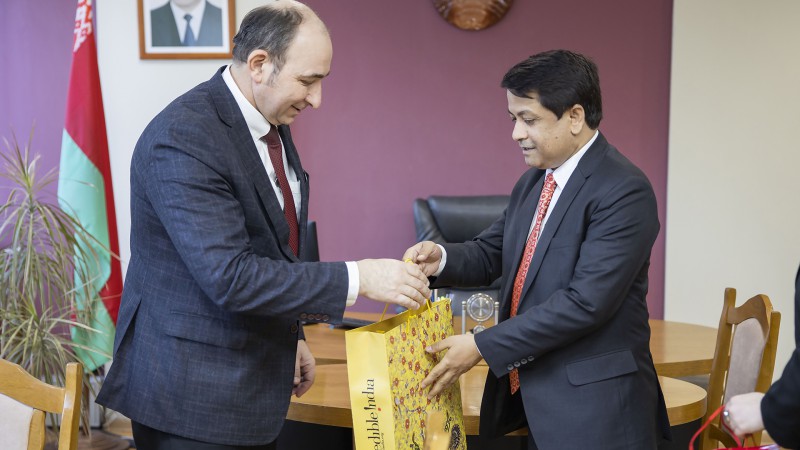 Ambassador Alok Ranjan Jha met with the management of the university and Indian students who are getting higher education at Grodno State Medical University. The meeting was attended by Vice-rector for educational work Igor P. Bogdanovich, Dean of the Faculty of Foreign Students Alexander A. Stenko, Deputy Dean Lyudmila N. Gushchina, Head of International Relations Oksana I. Mozalevich and Head of the Main Health Department of Grodno Region Executive Committee Lyudmila N. Keda.