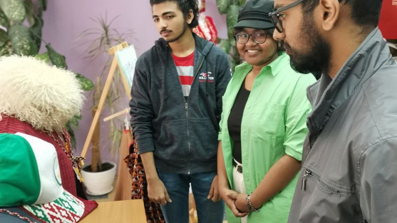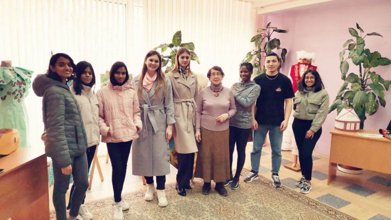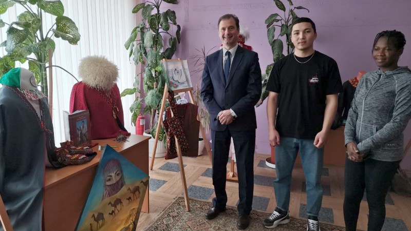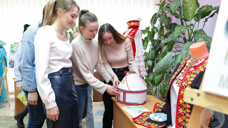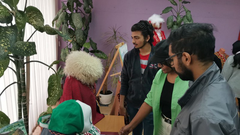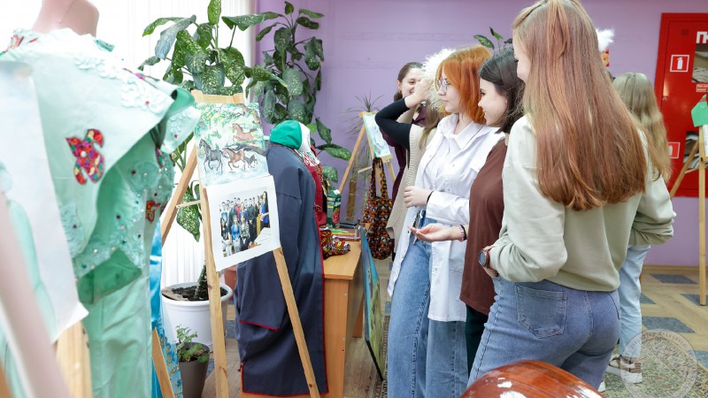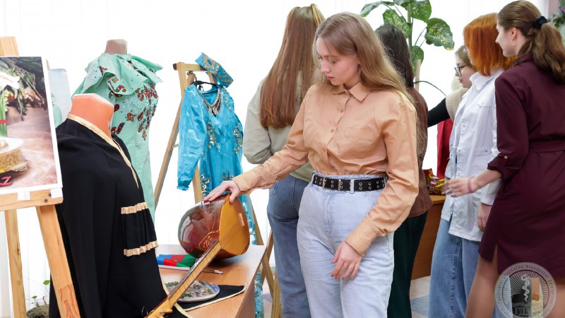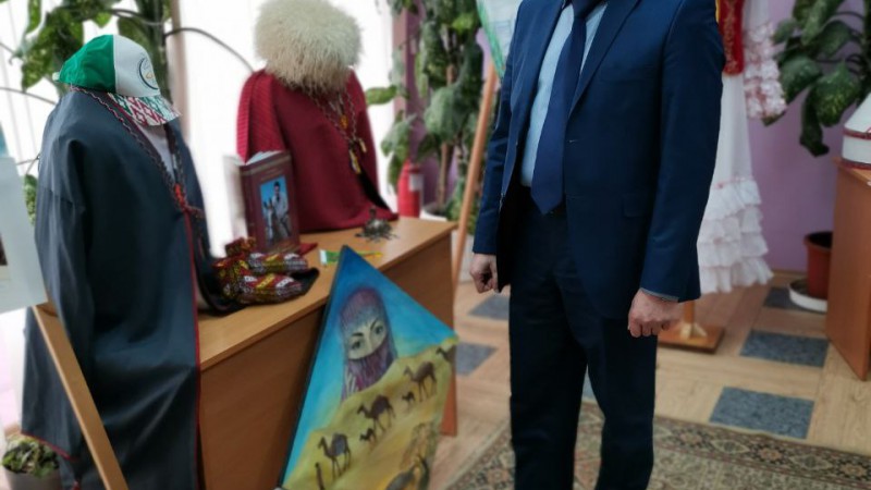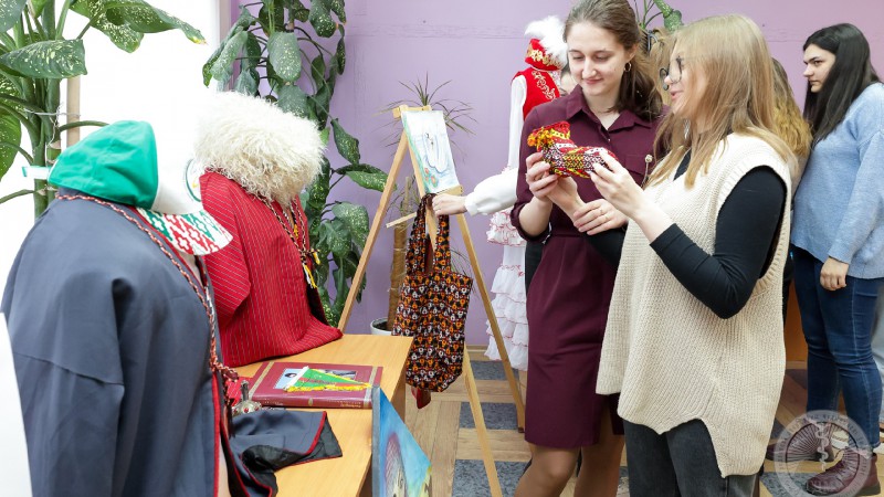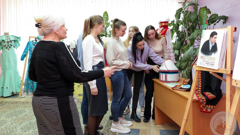 For this holiday, our students prepared an exhibition where they presented the national men's and women's clothing of the peoples of Central Asia, hats, drawings, national household items, accessories and even a musical instrument. Teachers and students of the University visited the exhibition, tried on telpek (Turkmen national men's hat), took pictures.