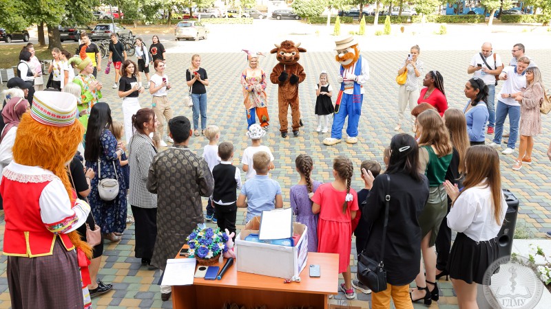 The final event was a small entertainment program for the children of university employees: dances, games with life-size puppets, fairy-tale characters and parents. The children, schoolchildren and program participants received gifts.