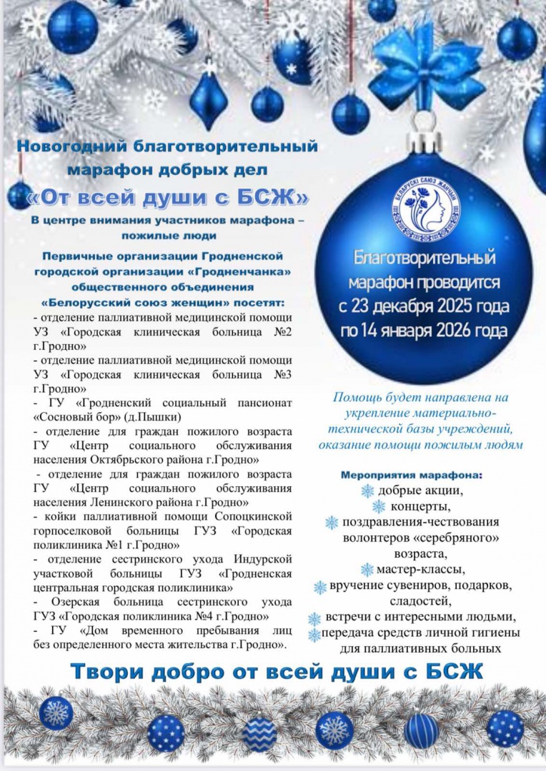Новогодний благотворительный марафон добрых дел "От всей души с БСЖ"