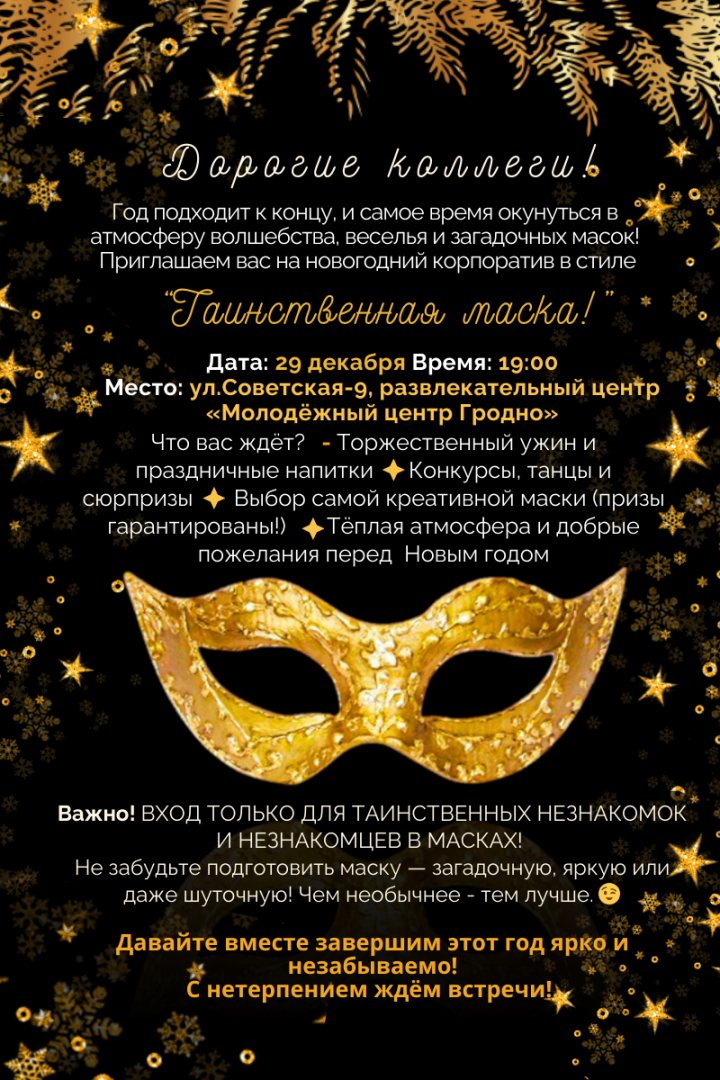 Приглашаем на новогодний корпоратив «Таинственная маска»!