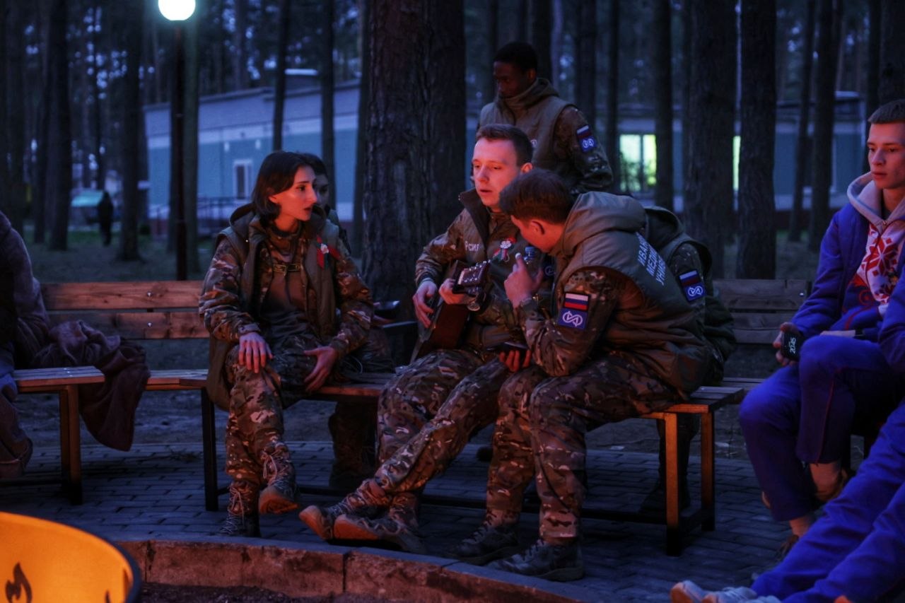 Настоящим сердцем вечера стал традиционный конкурс патриотической песни у костра. Было по‑настоящему душевно, дружно, атмосферно: смех, тёплые объятия, общие воспоминания и песни, которые знают наизусть.