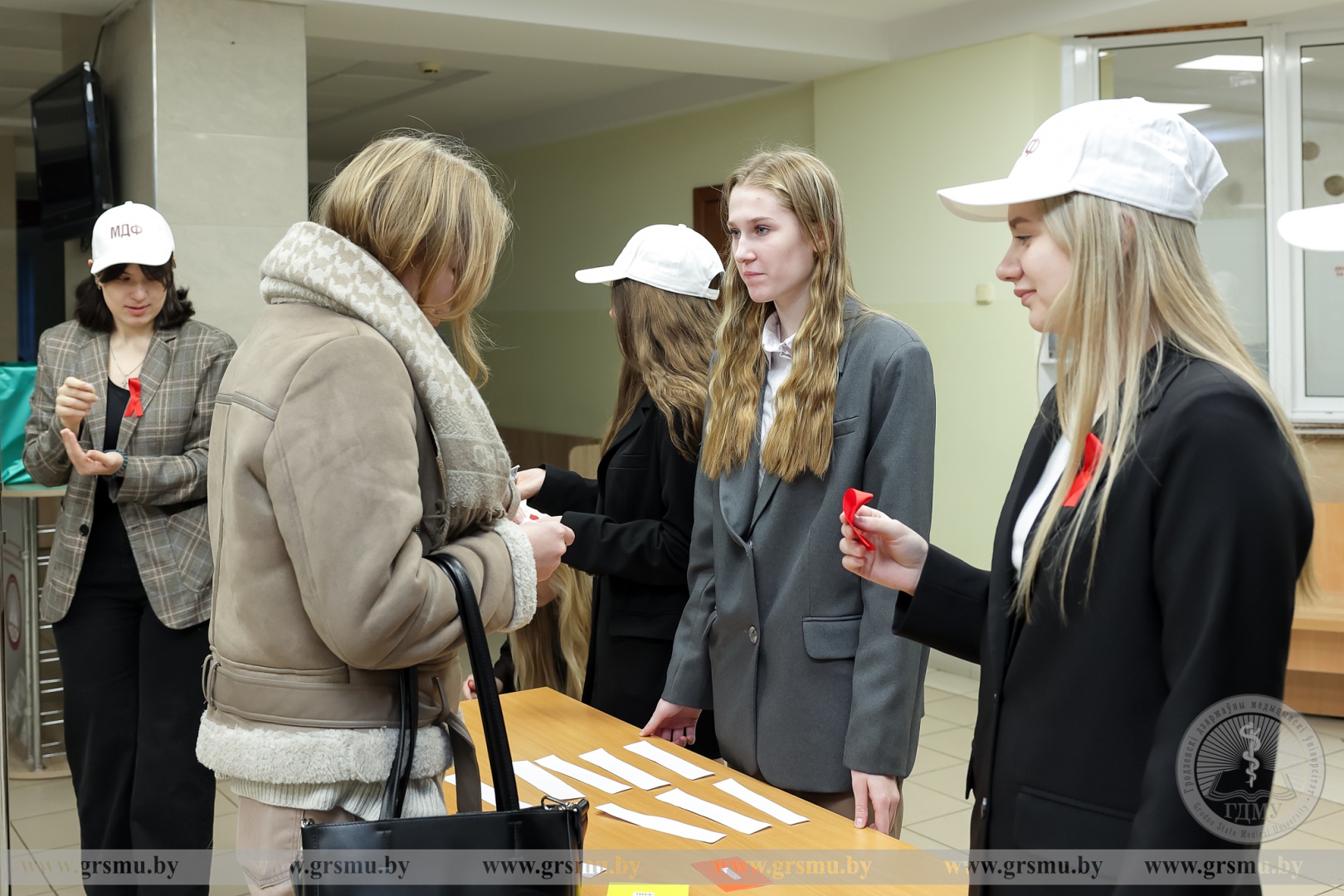 Сегодня прошла акция «Стоп СПИД», организованная студентами медико‑диагностического факультета. В ходе акции участники активно раздавали информационные листовки, в которых содержались ключевые факты о ВИЧ/СПИДе. Помимо этого, студенты проводили просветительские беседы, рассказывая о значении Всемирного дня борьбы со СПИДом и актуальности проблемы в современном мире.