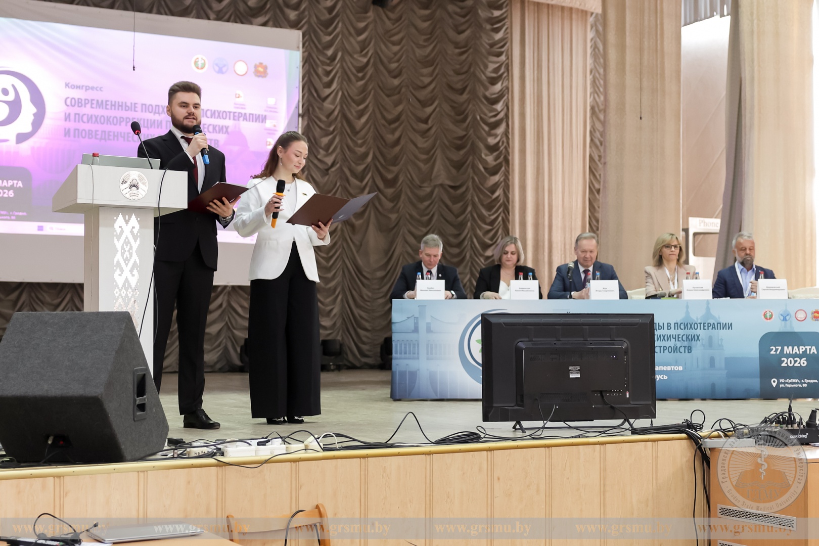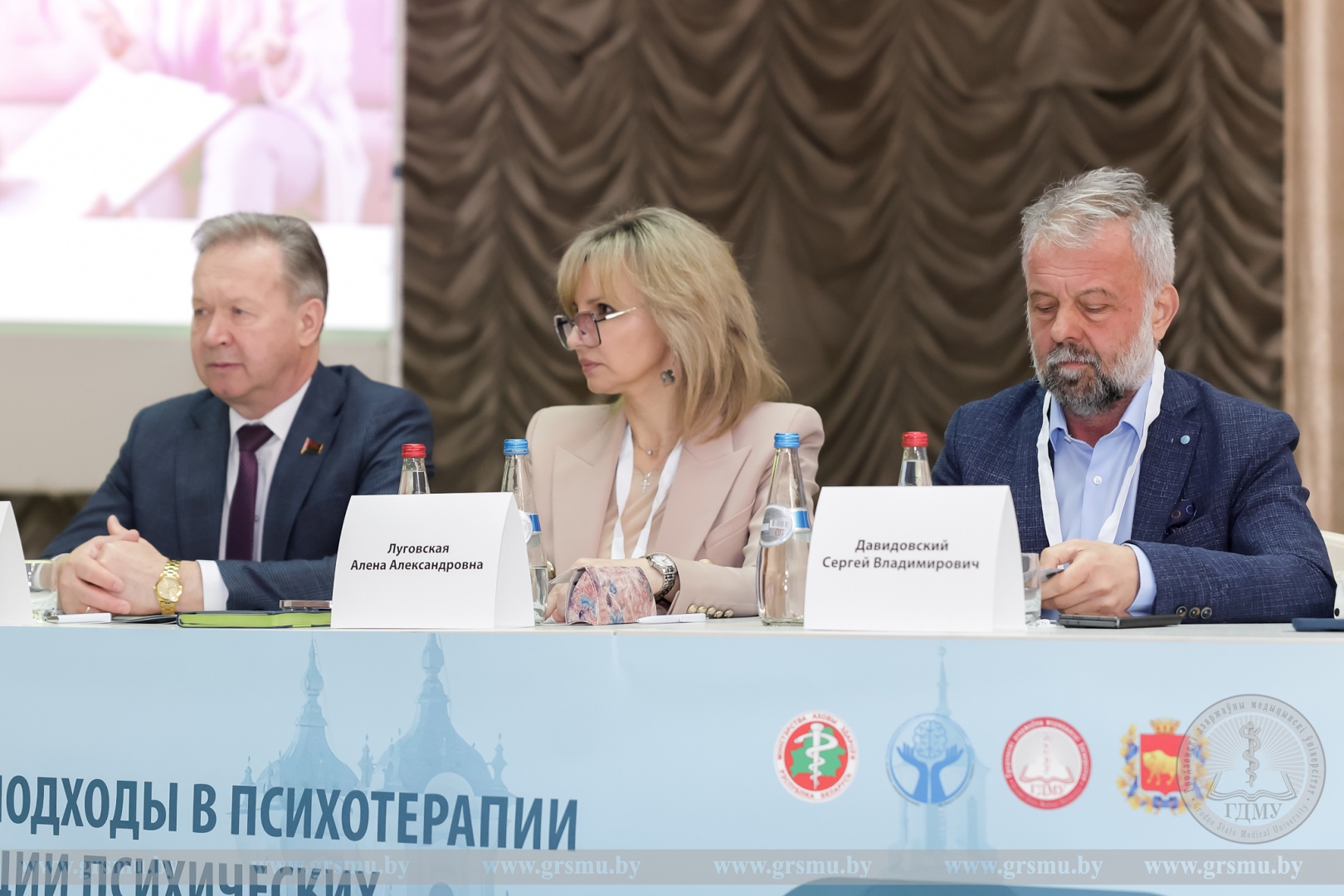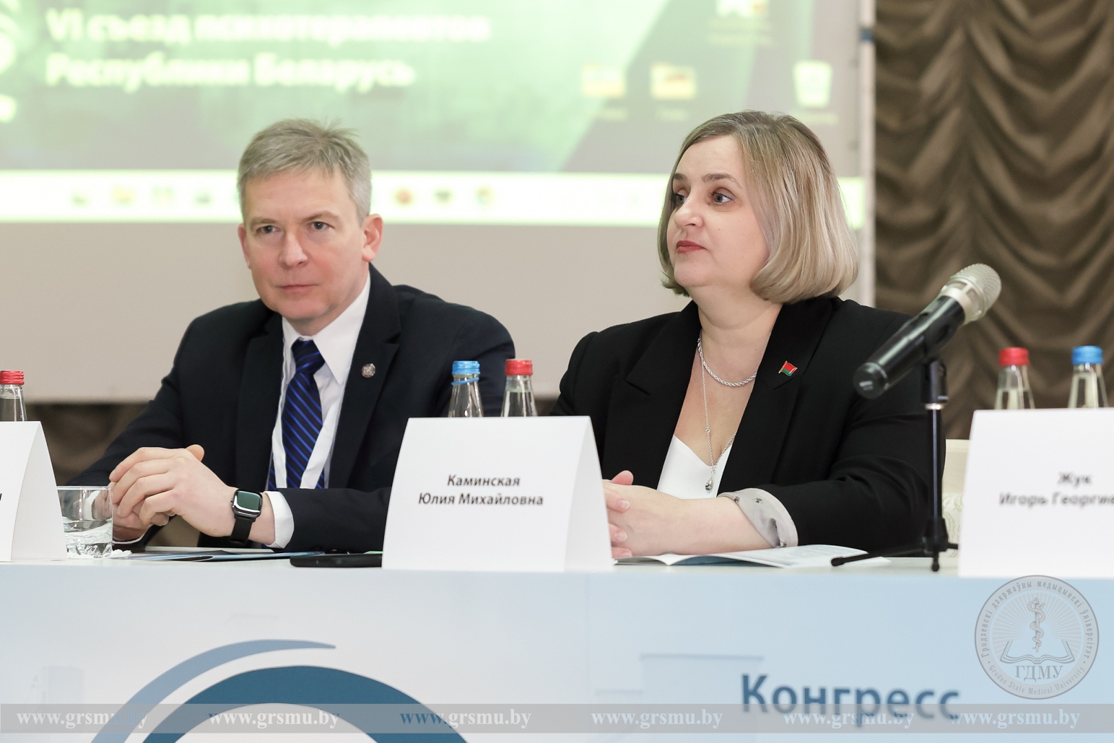 Участие в пленарном заседании приняли ректор Гродненского государственного медицинского университета Игорь Георгиевич Жук, директор Республиканского научно-практического центра психического здоровья, главный внештатный специалист по психиатрии и наркологии Министерства здравоохранения Республики Беларусь Юлия Михайловна Каминская, проректор по научной работе Гродненского медицинского университета Михаил Николаевич Курбат и другие приглашенные гости.