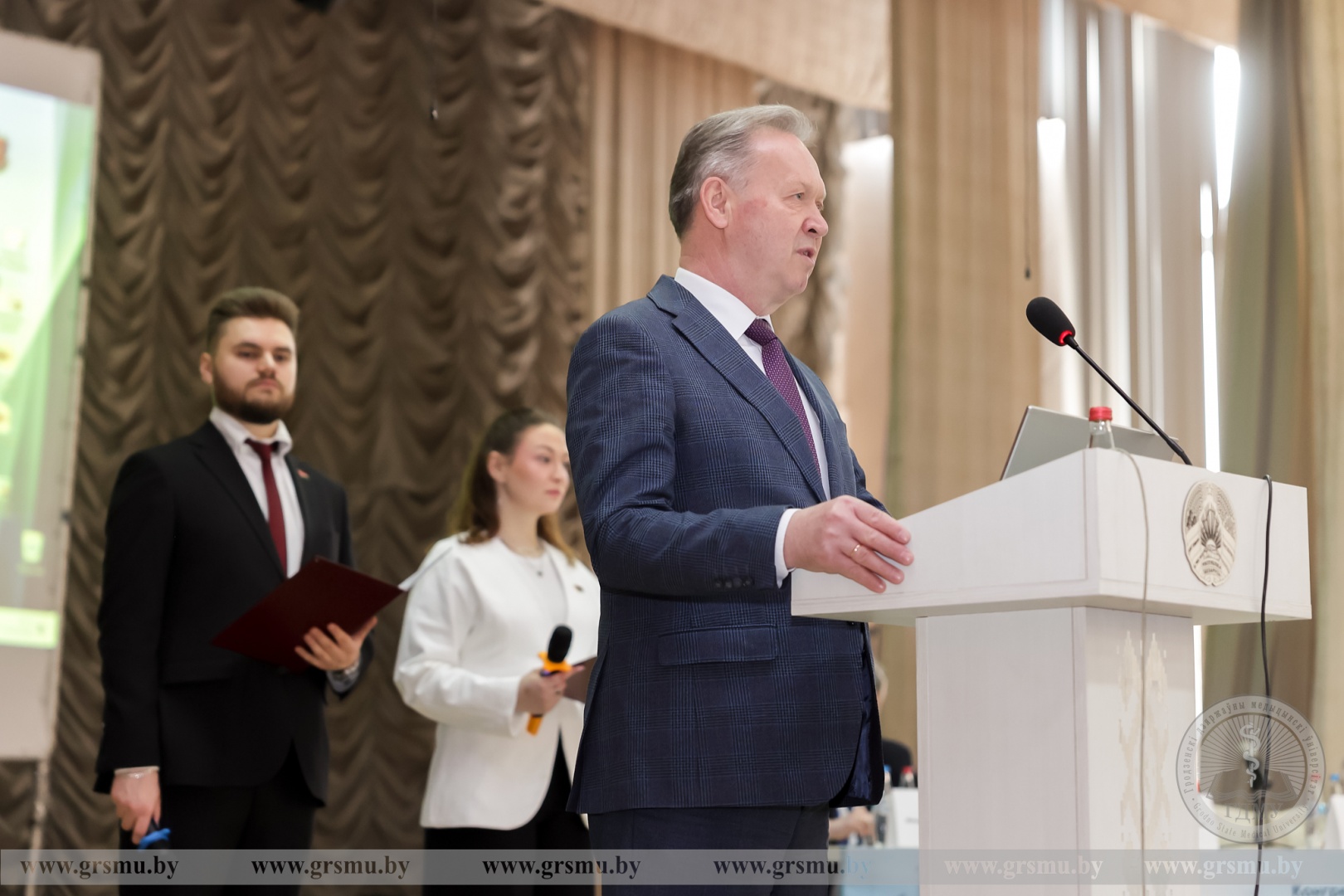 Ректор ГрГМУ Игорь Георгиевич Жук поприветствовал участников конгресса и VI съезда психотерапевтов и кратко рассказал об истории создания и развития нашего вуза: