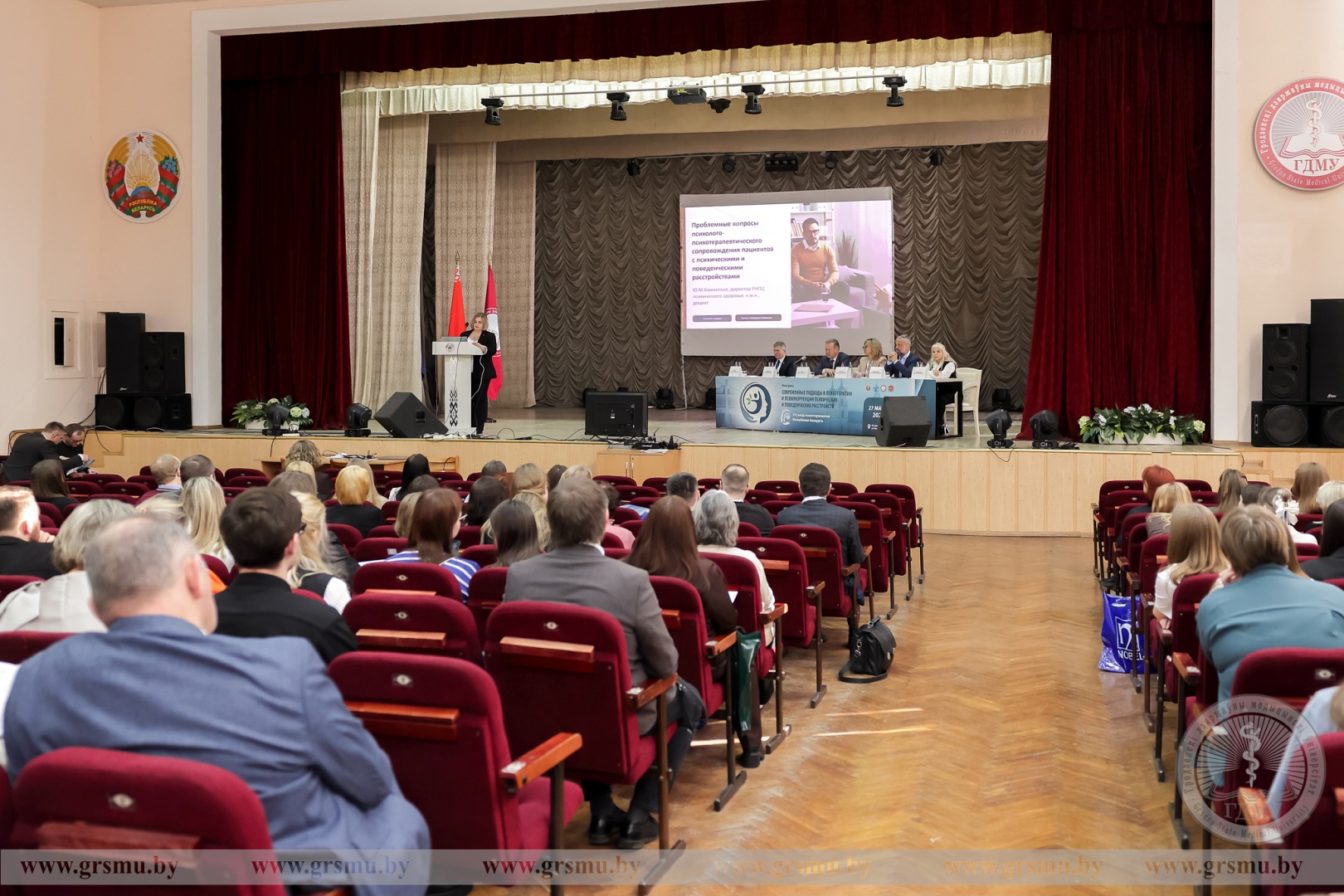В рамках пленарного заседания с докладами выступили представители отечественных учреждений здравоохранения, белорусских и российских высших учебных заведений – РНПЦ психического здоровья, БГМУ, МГУ им. М.В. Ломоносова, ГрГМУ.