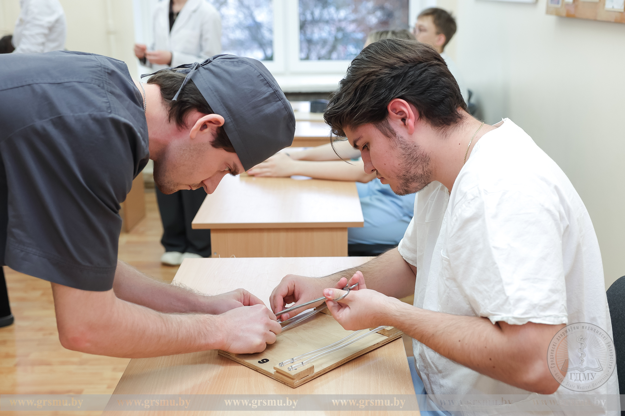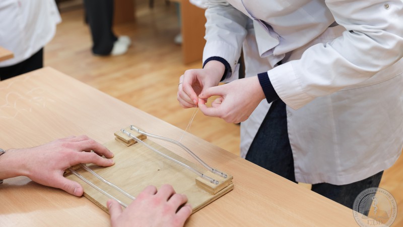 Первым испытанием стал конкурс вязания хирургических узлов на скорость, где каждый участник должен был не только опередить соперников, но и выполнить задание максимально точно.