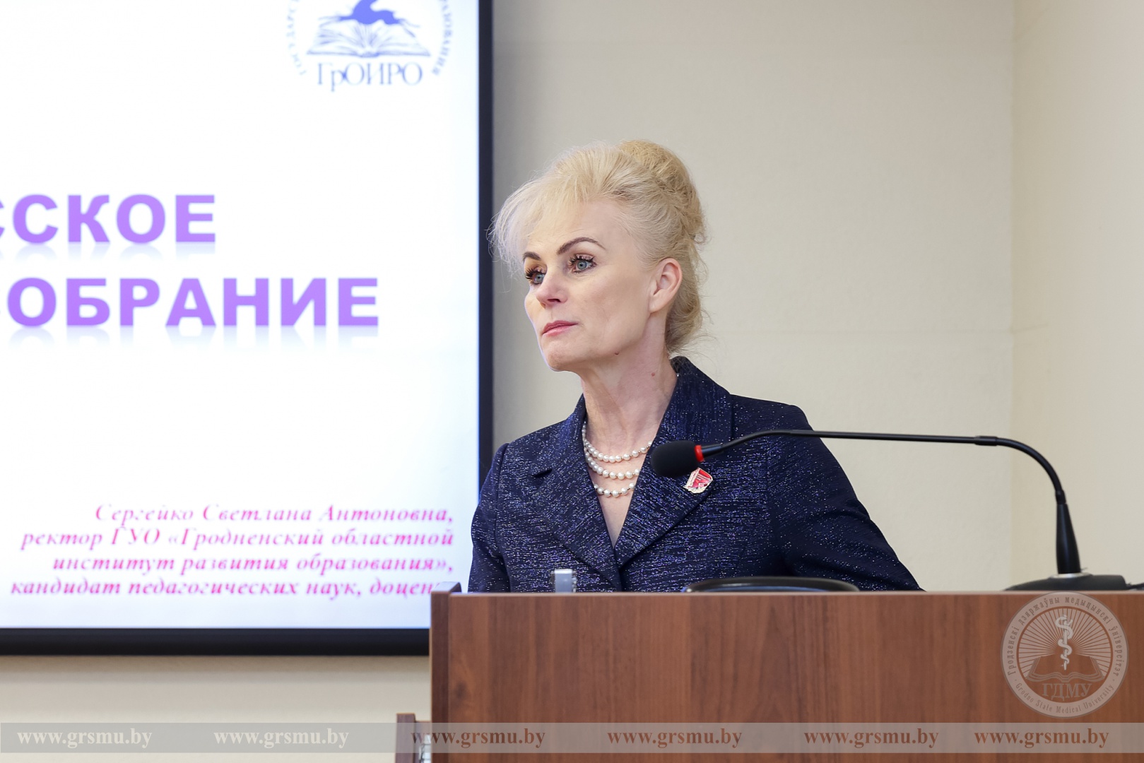 С приветственным словом и содержательным докладом выступила Светлана Антоновна Сергейко, ректор Гродненского областного института развития образования, делегат Всебелорусского народного собрания.