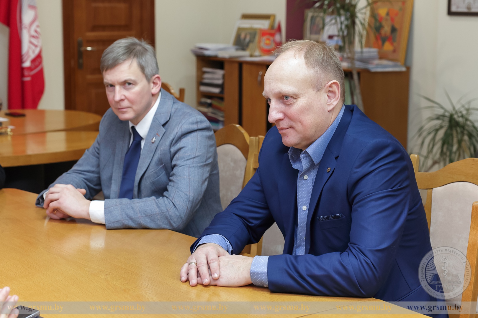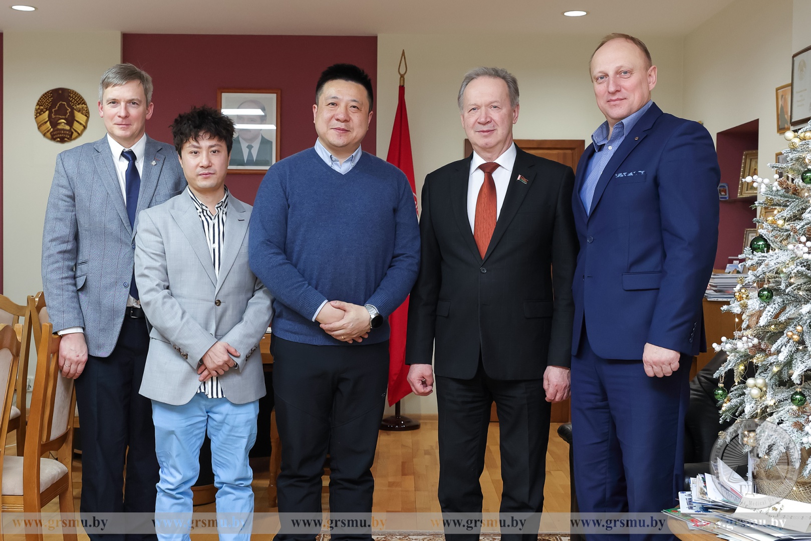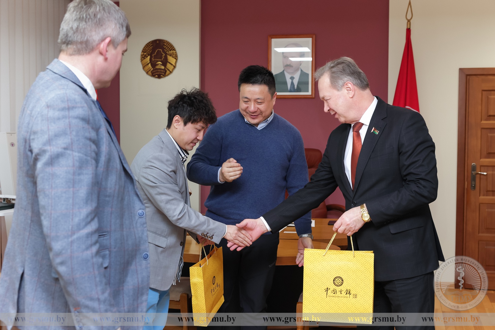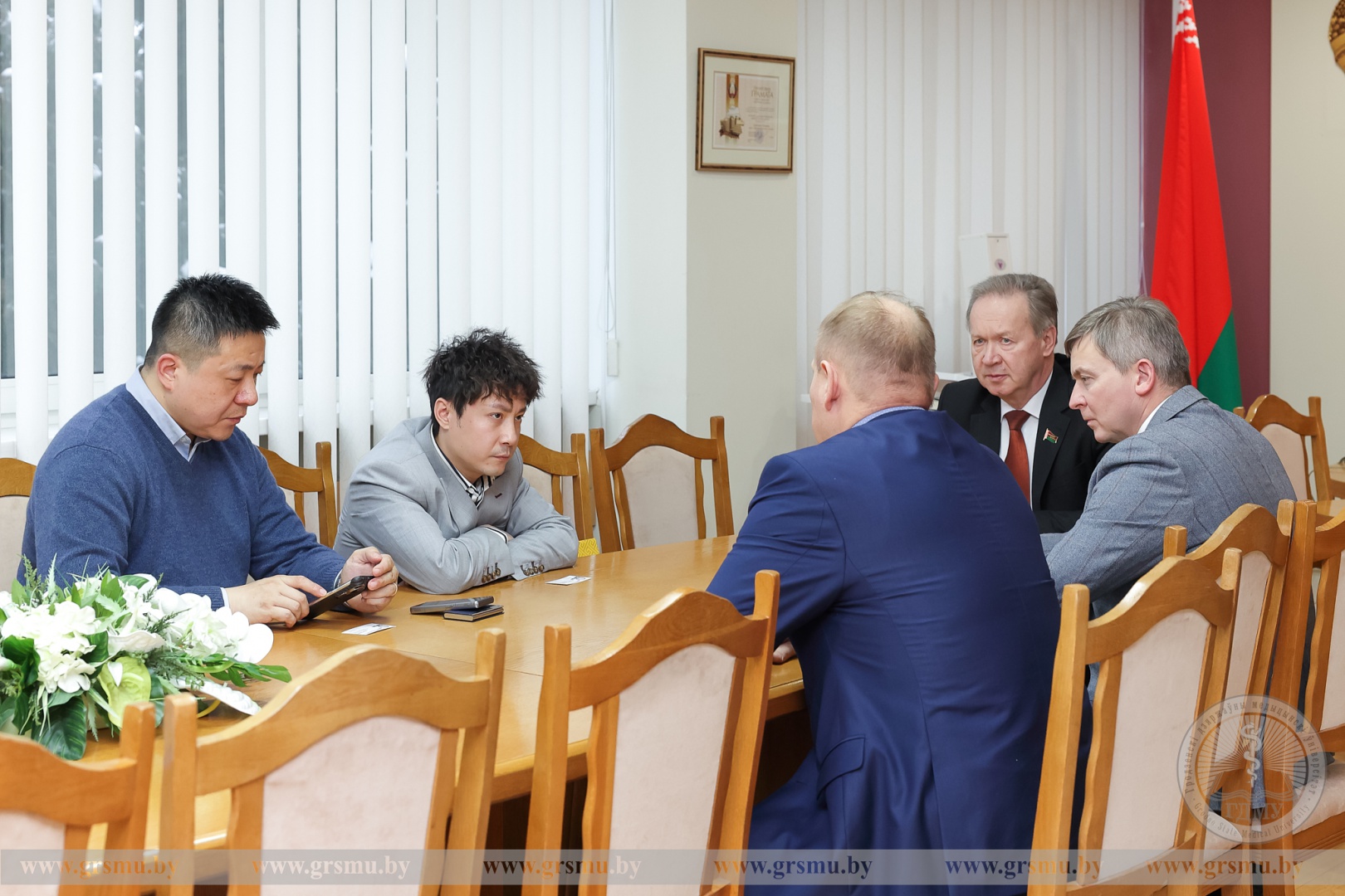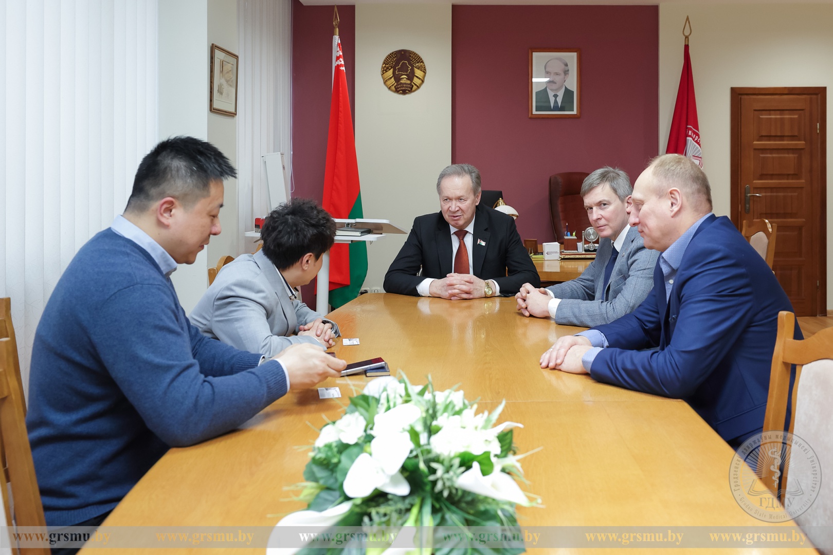 В Гродненском государственном медицинском университете прошла встреча с представителями резидента Китайско-белорусского индустриального парка «Великий камень» ООО «Медицинская научно‑техническая компания «Хайхунбел» (КНР) – генеральным директором Чэнь Чао и коммерческим и техническим директором Ма Минь.