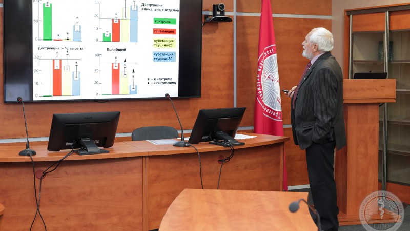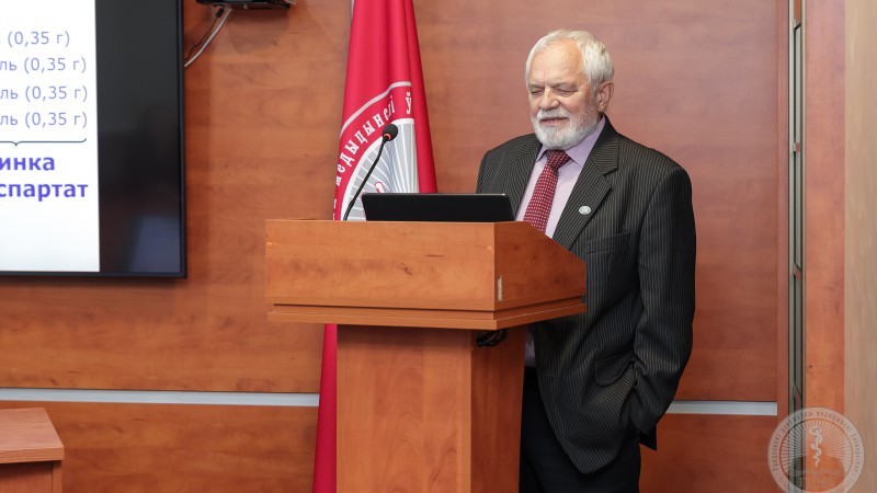 Началась работа конференции с доклада заведующего кафедрой фармакологии имени профессора М. В. Кораблева Валерия Ивановича Козловского на тему «История кафедры фармакологии». В своем выступлении он подробно осветил основные вехи становления кафедры, рассказал о ученых, внесших значительный вклад в ее развитие, а также представил достижения в научной и образовательной деятельности за все годы существования.
