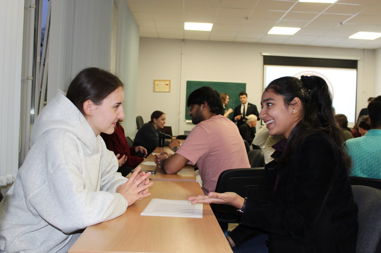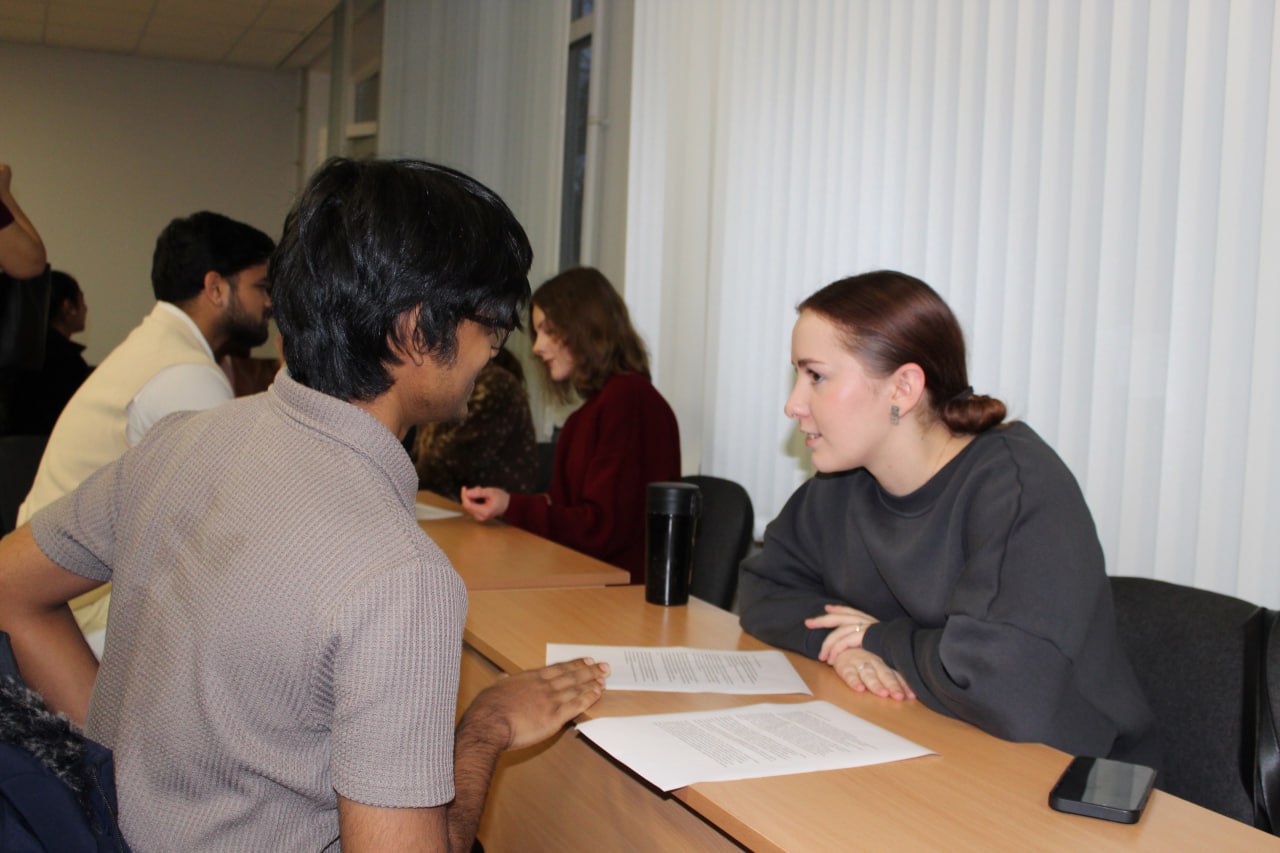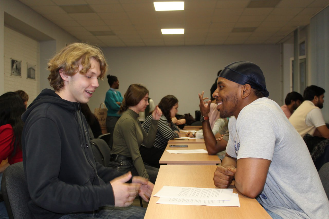 Первая встреча объединила студентов с разными интересами и уровнями подготовки. В неформальной обстановке участники вели диалог на английском и русском языках, обсуждая как повседневные, так и профессиональные вопросы.