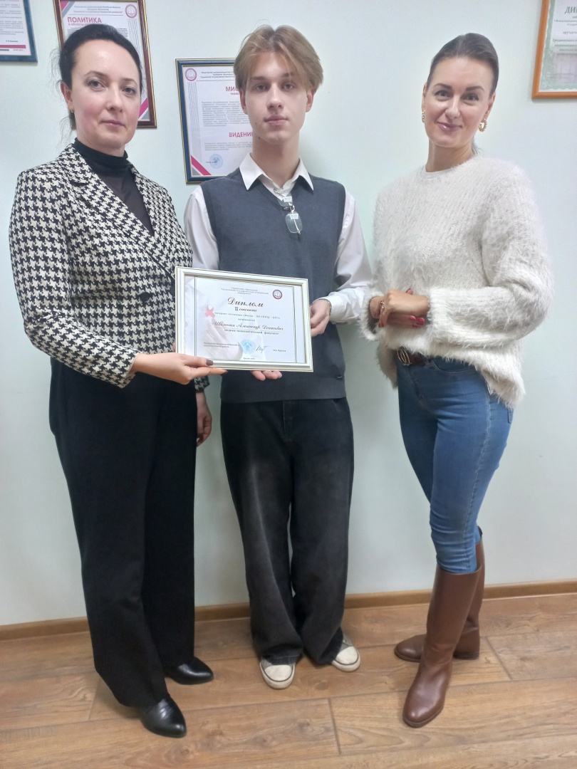 диплом 3 степени – Шалыгин Александр Денисович, медико-психологический факультет,1 курс, 4 группа.