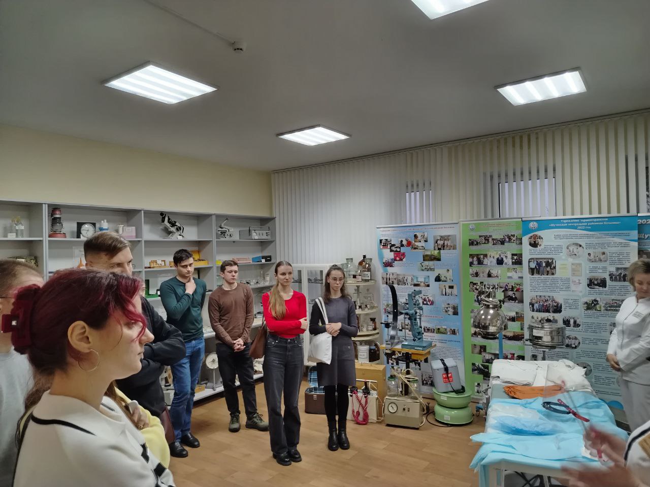Об истории больницы рассказала главная медсестра Щучинской ЦРБ Марины Викторовны Акстилович. Она провела для студентов экскурсию по музейной экспозиции, где представлены уникальные документальные свидетельства становления здравоохранения на Щучинщине.