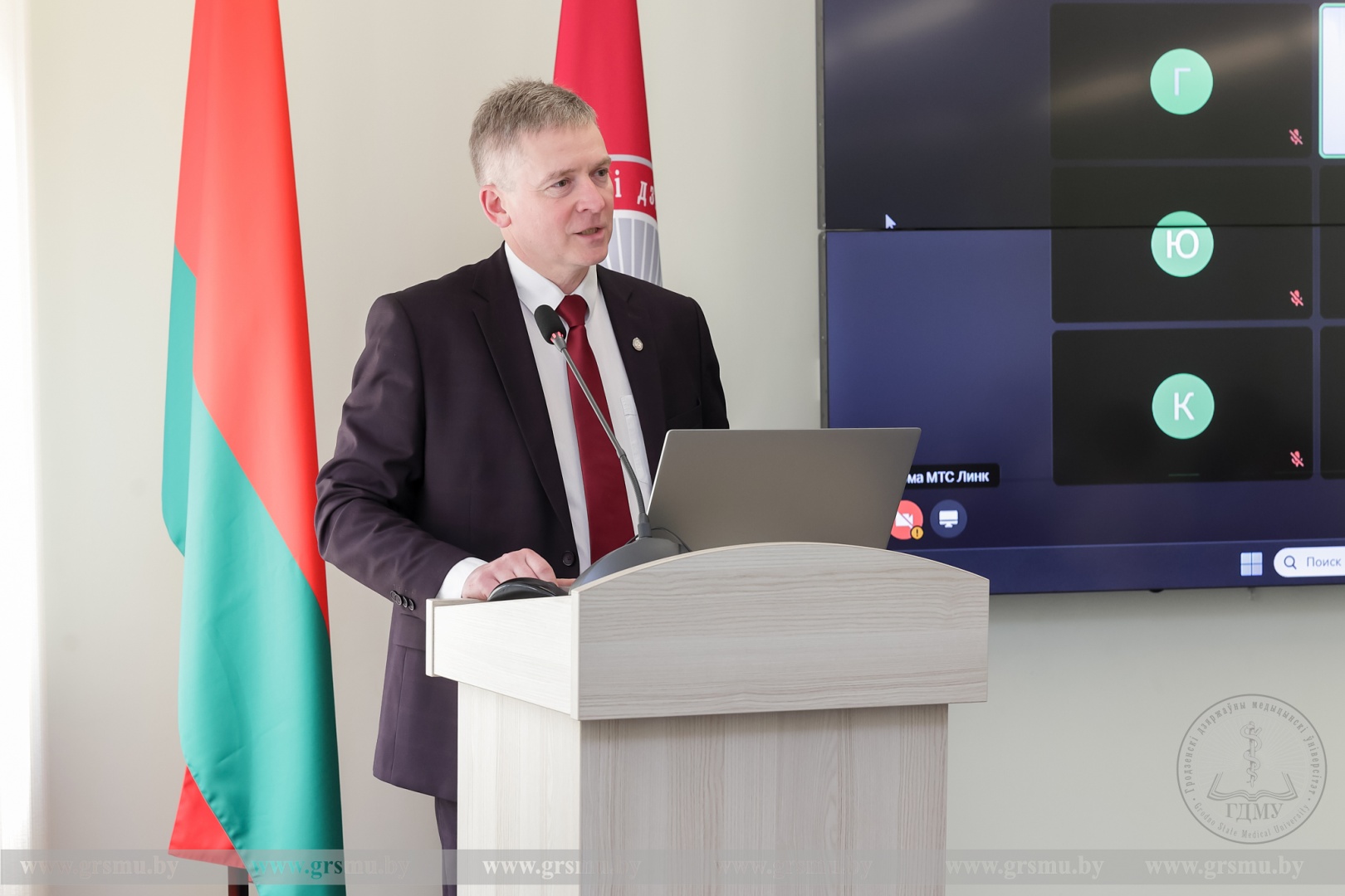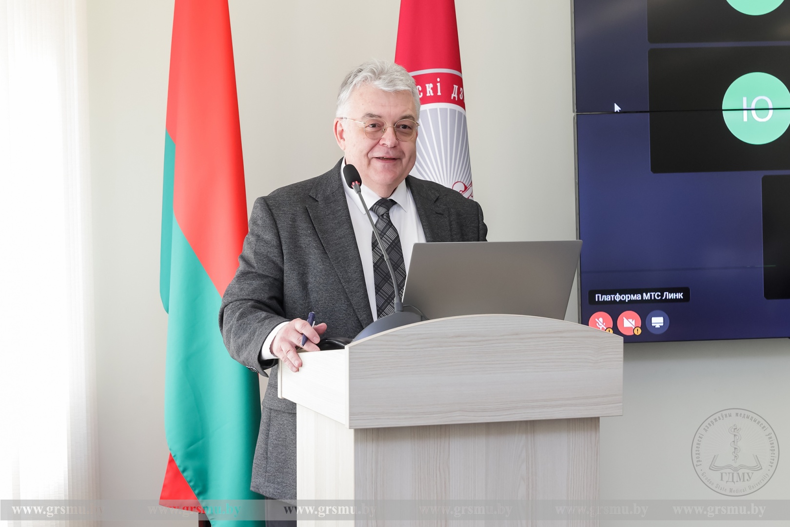 Проректор по научной работе ГрГМУ Михаил Николаевич Курбат поприветствовал участников мероприятия от имени ректора Гродненского государственного медицинского университета Игоря Георгиевича Жука.