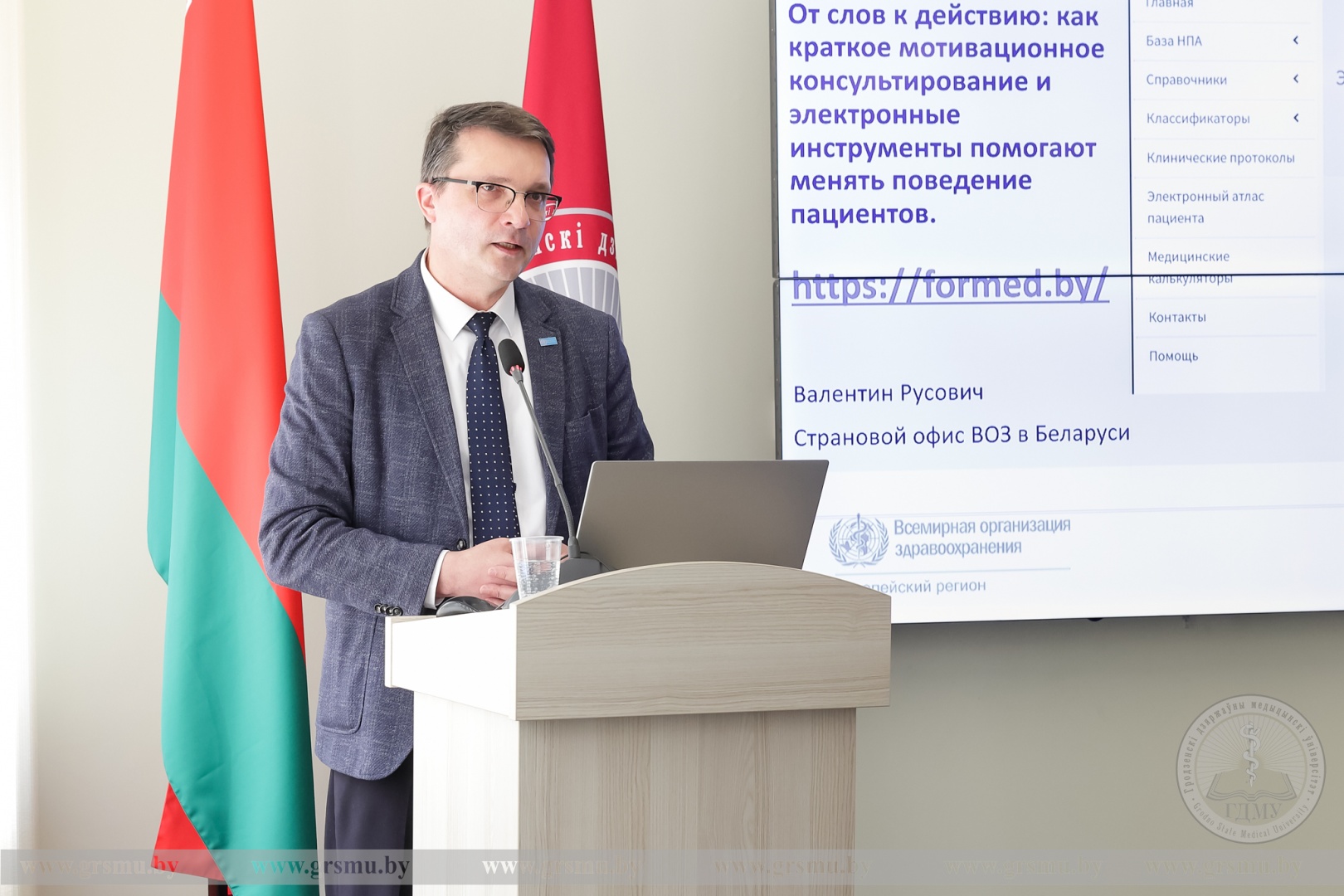 Руководитель Странового офиса ВОЗ в Республике Беларусь, кандидат медицинских наук Сергей Викторович Диордица отметил, что если раньше студентов медицинских вузов готовили к тому, чтобы лечить пациентов, то современные реалии требуют не только лечить, но и предупреждать болезни.